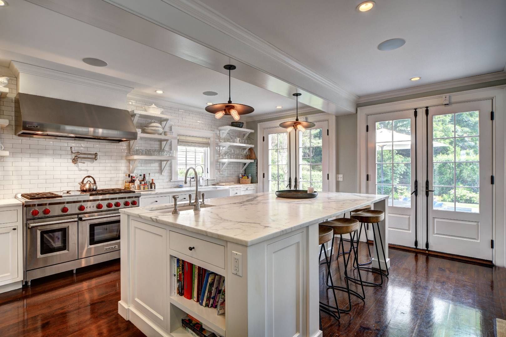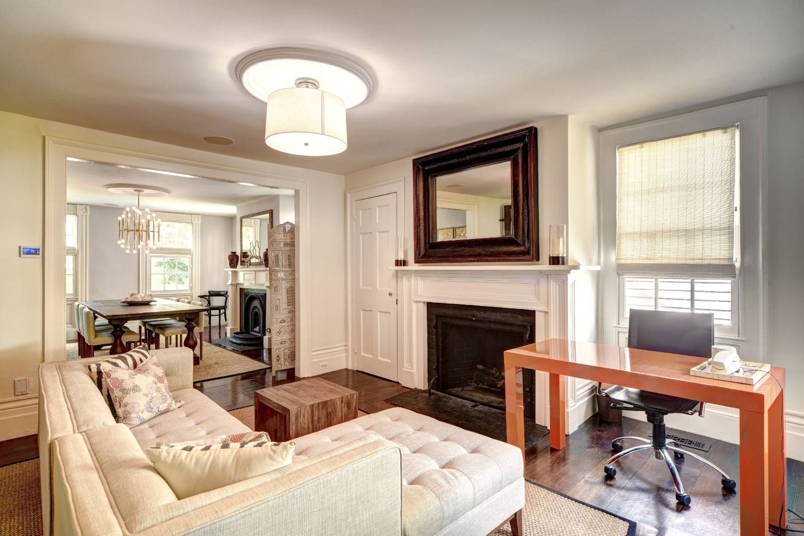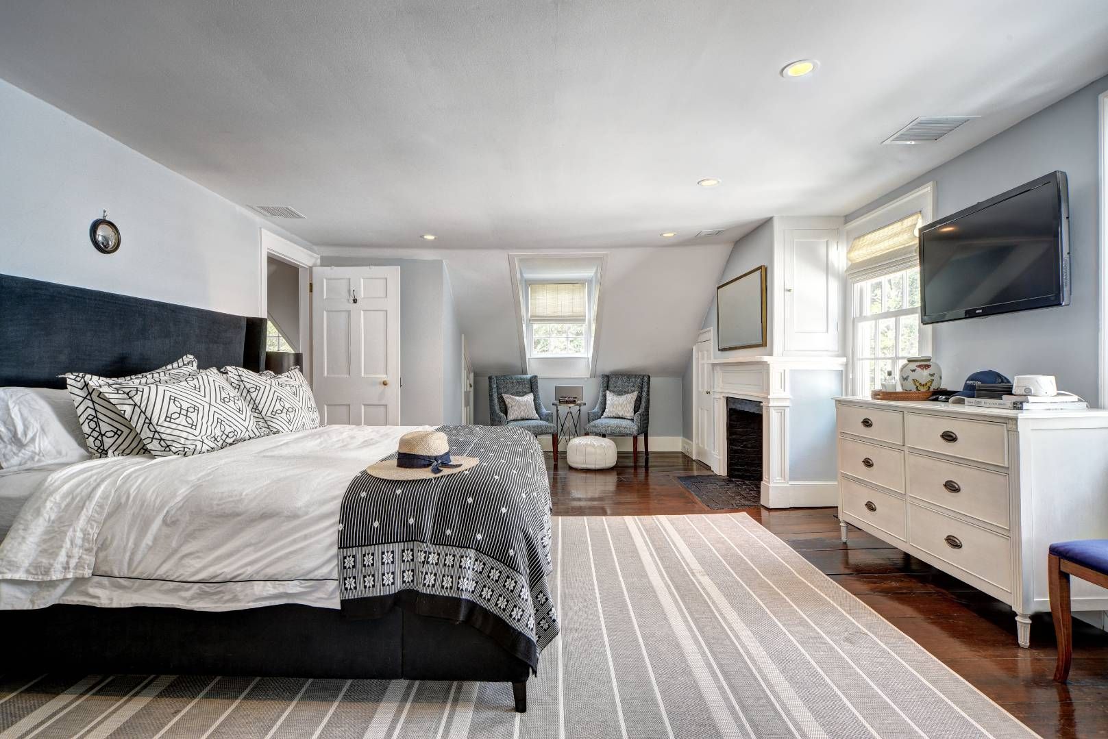 Sag Harbor Village premiere location--Suffolk Street. Impeccably restored early 1800s Georgian-style home featuring 5 bedrooms, 4 baths, 2 pairs of double parlors, 9 fireplaces (currently 2 are operational), a spacious newly renovated eat-in-kitchen with French doors leading out to a lovely terraced private garden and heated Gunite pool. The front elevation features elegant 6 over 6 windows and an impressive front door with gorgeous sidelights