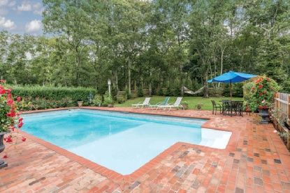 On a quiet street close to ocean, bay and village is this newly and completely renovated four bedroom, three bath two-story colonial home on .55+/- acre. The living room has white beamed ceiling, hardwood floors and a cozy fireplace. The bright kitchen has stainless steel appliances and generous counter space, and the adjacent formal dining area has French doors opening to the deck and pool area. In the first floor master suite are sliding gla