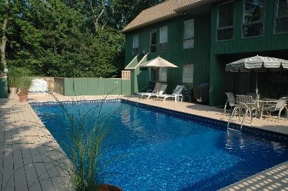 The perfect Westhampton vacation home with large pool and hot tub Pristine condition, three bedroom, very spacious. First floor has two bedrooms, cathedral ceiling, eat-in kitchen and formal dining room. Second floor has master bedroom/bathroom complete with fireplace, large living room, and balcony. Extras include loft area for office or extra bedroom, basement with gym.