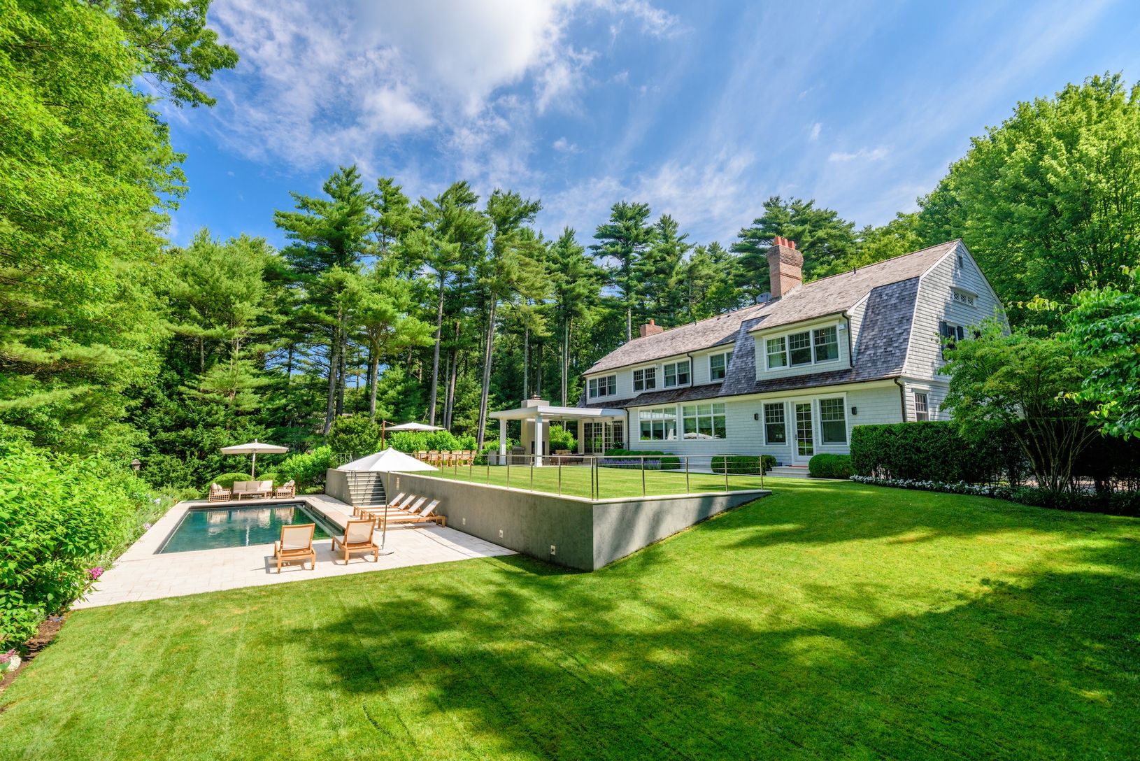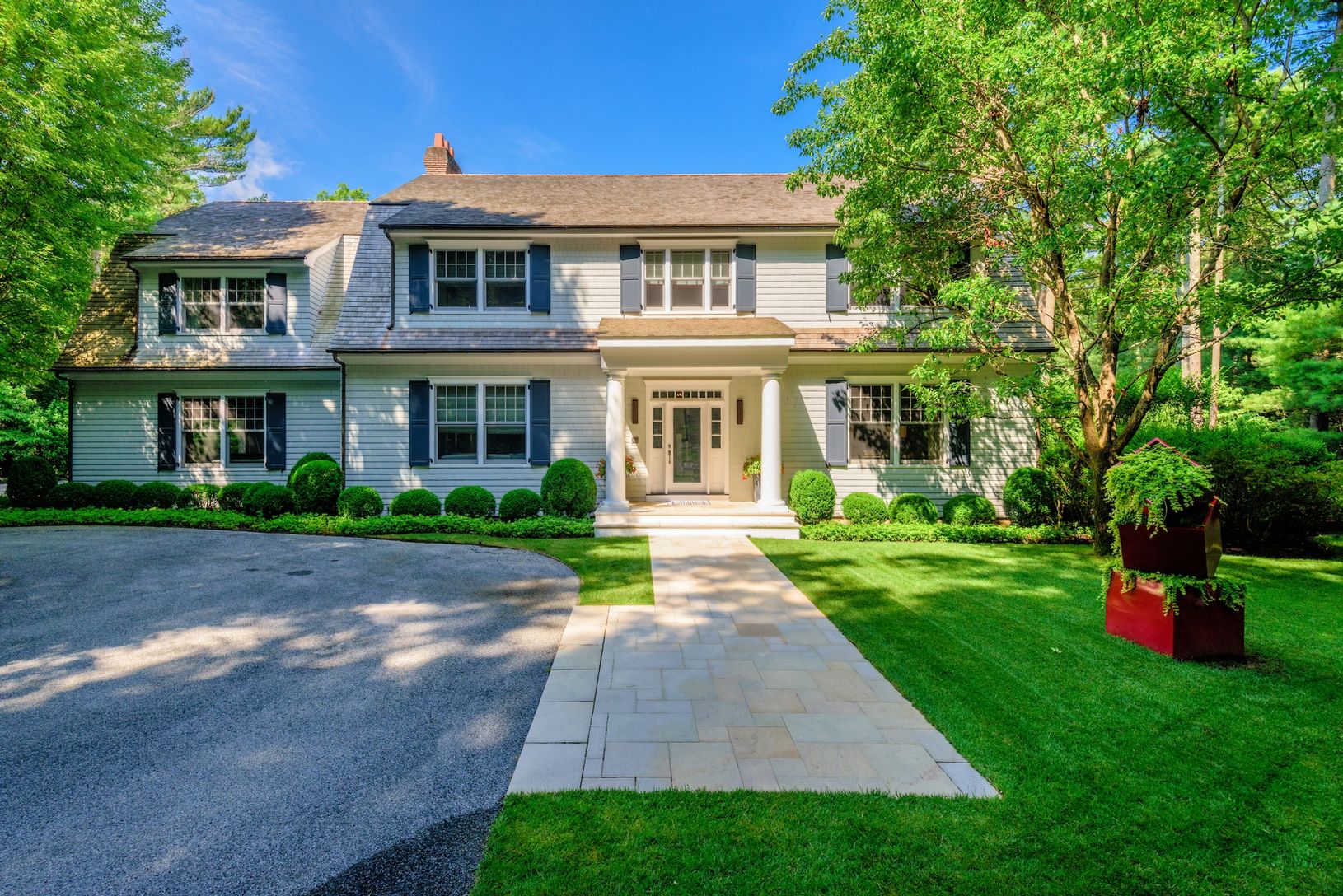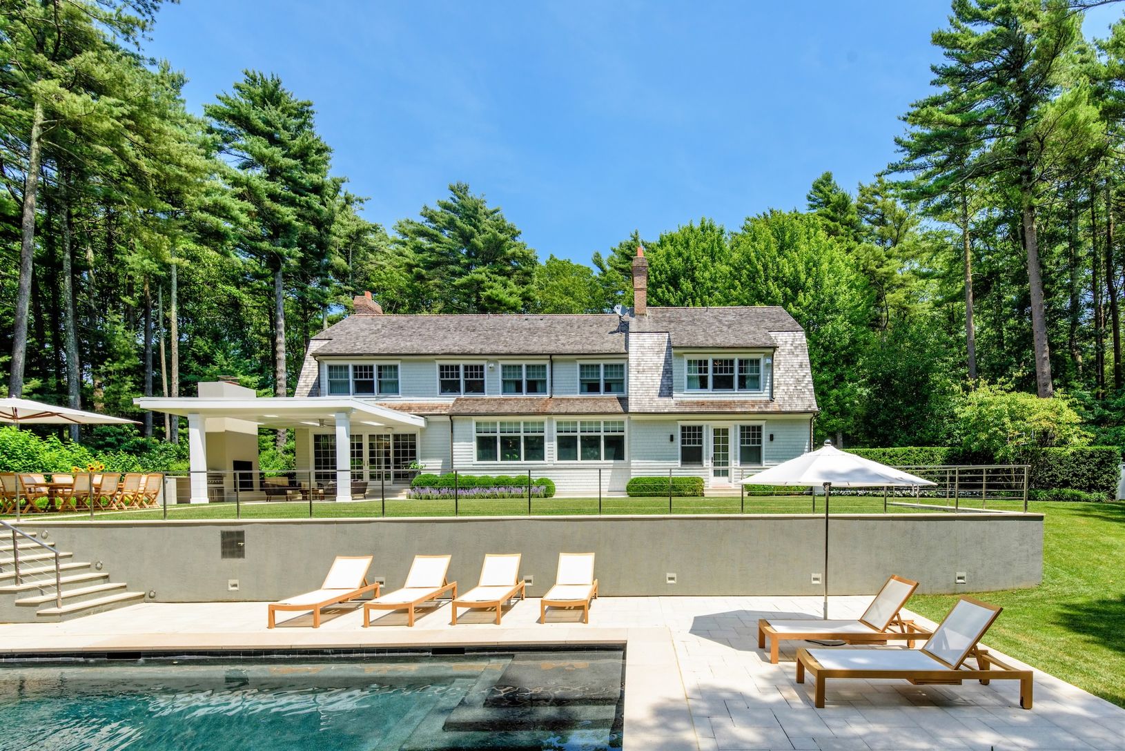 Set on a gated 2.4+/- acres amid towering white pines, this designer decorated 6400+/- sq. ft. traditional custom-built Larry Kane property offers comfort, style and great entertaining spaces. A welcoming foyer leads to a living room with fireplace, spacious formal dining room, den with wet-bar, and light-filled, stainless steel chef's kitchen with fireplace, large island, and banquette seating. The second floor features five guest bedrooms,