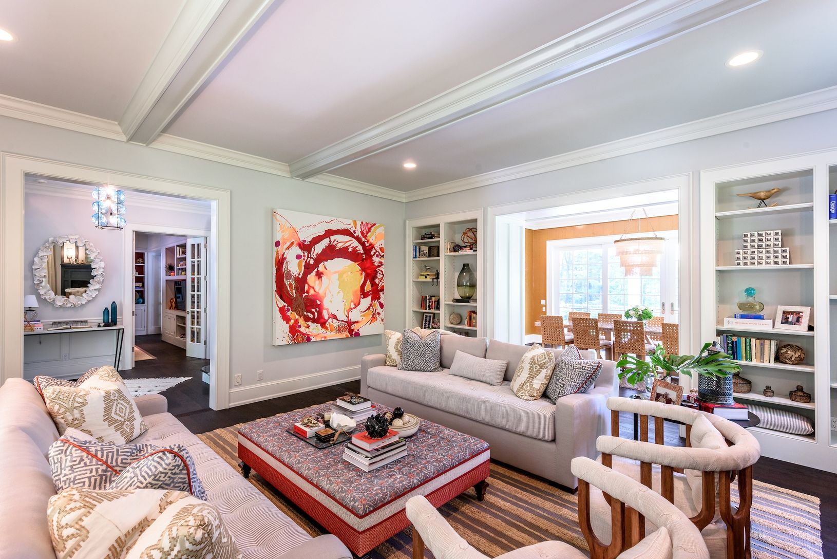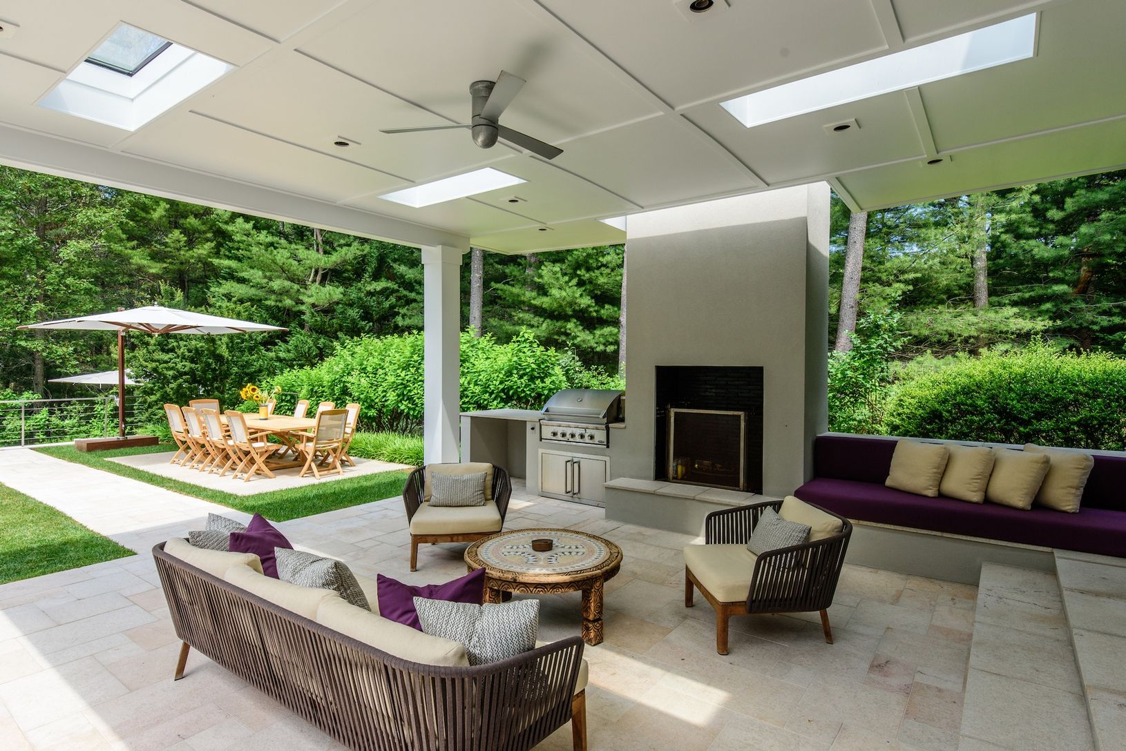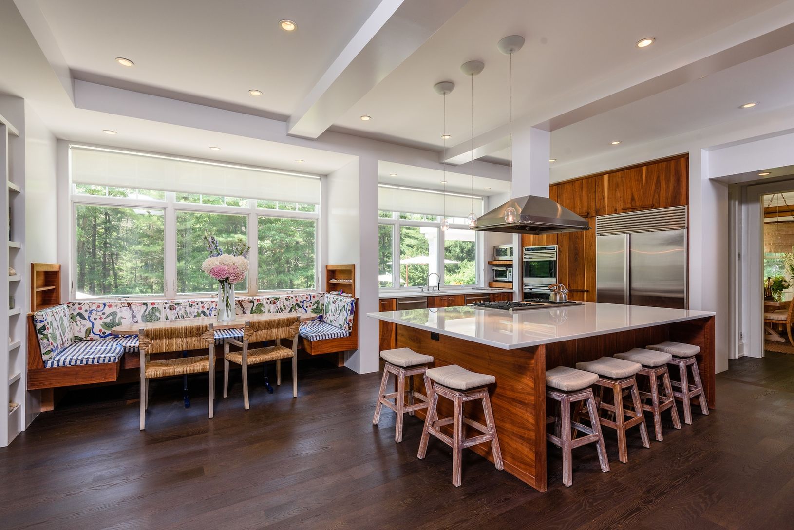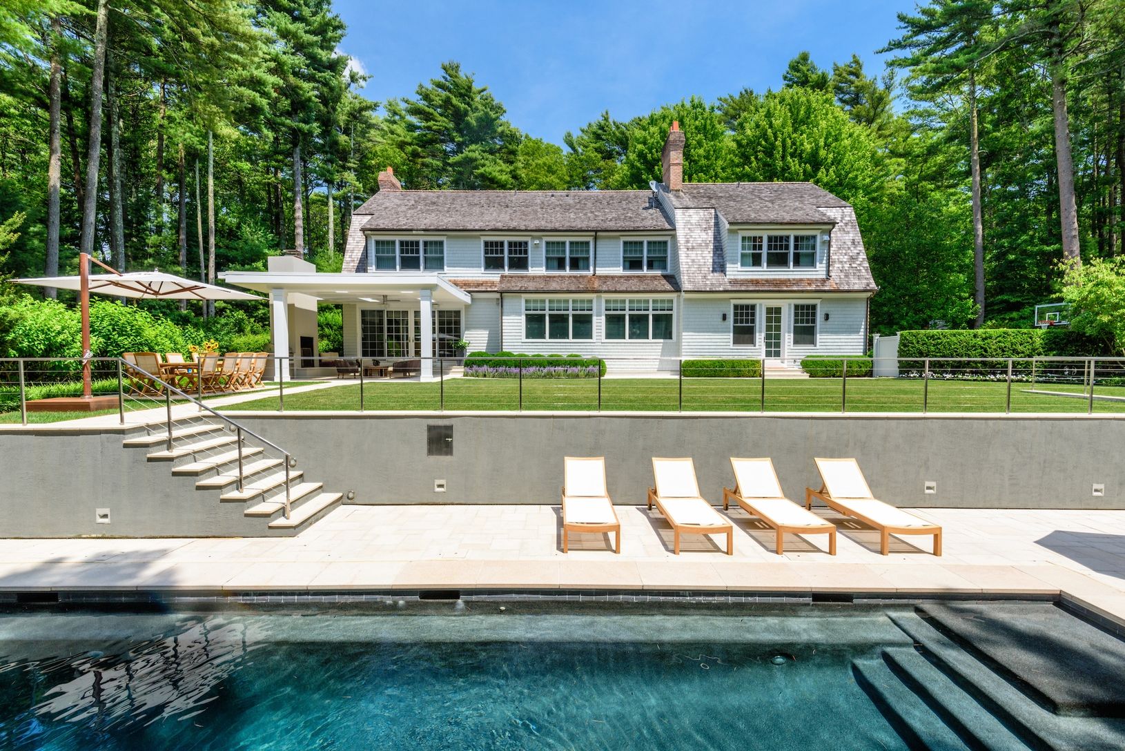 Set on a gated 2.4+/- acres amid towering white pines, this designer decorated 6400+/- sq. ft. traditional custom-built Larry Kane property offers comfort, style and great entertaining spaces. A welcoming foyer leads to a living room with fireplace, spacious formal dining room, den with wet-bar, and light-filled, stainless steel chef's kitchen with fireplace, large island, and banquette seating. The second floor features five guest bedrooms,