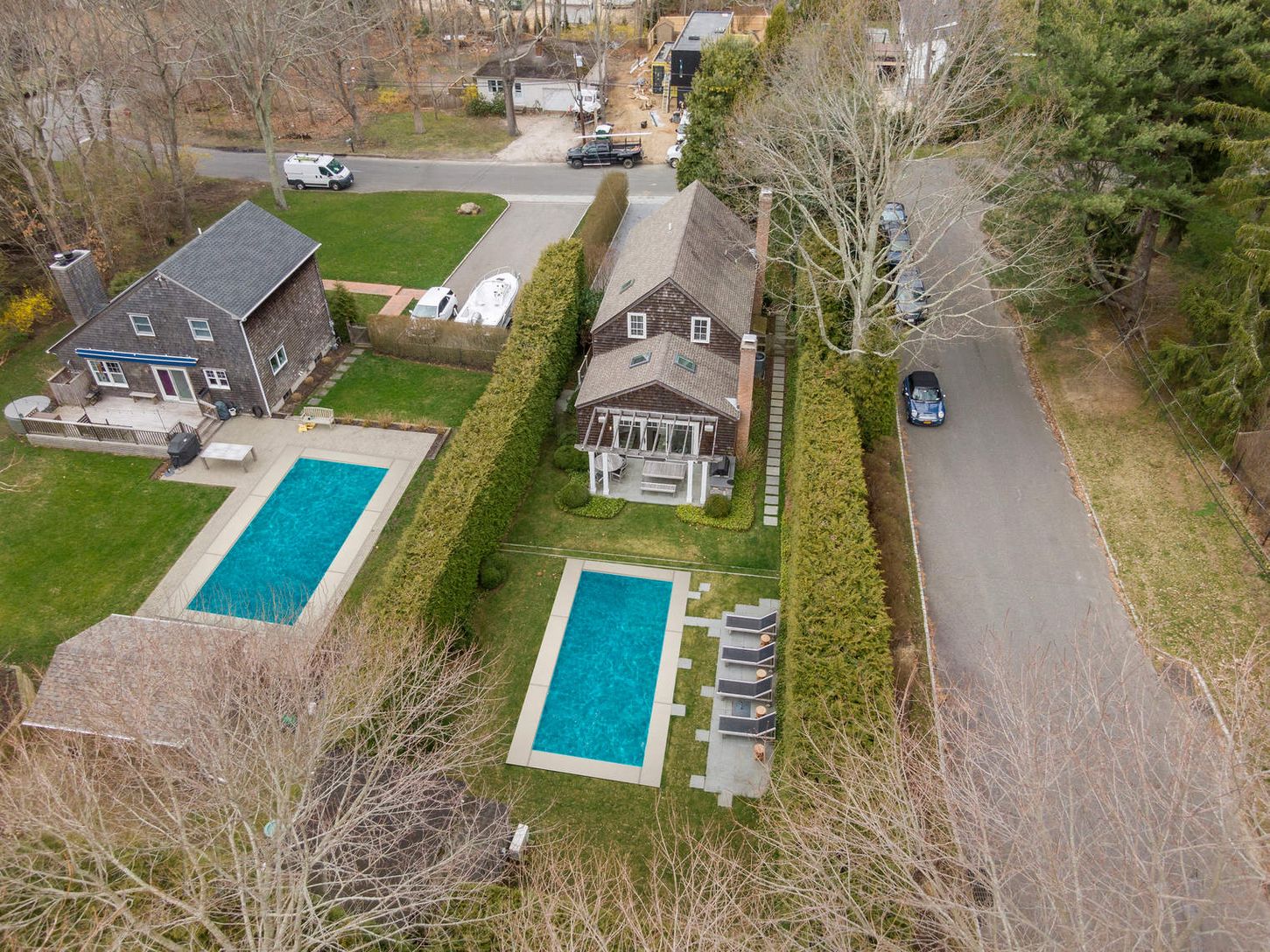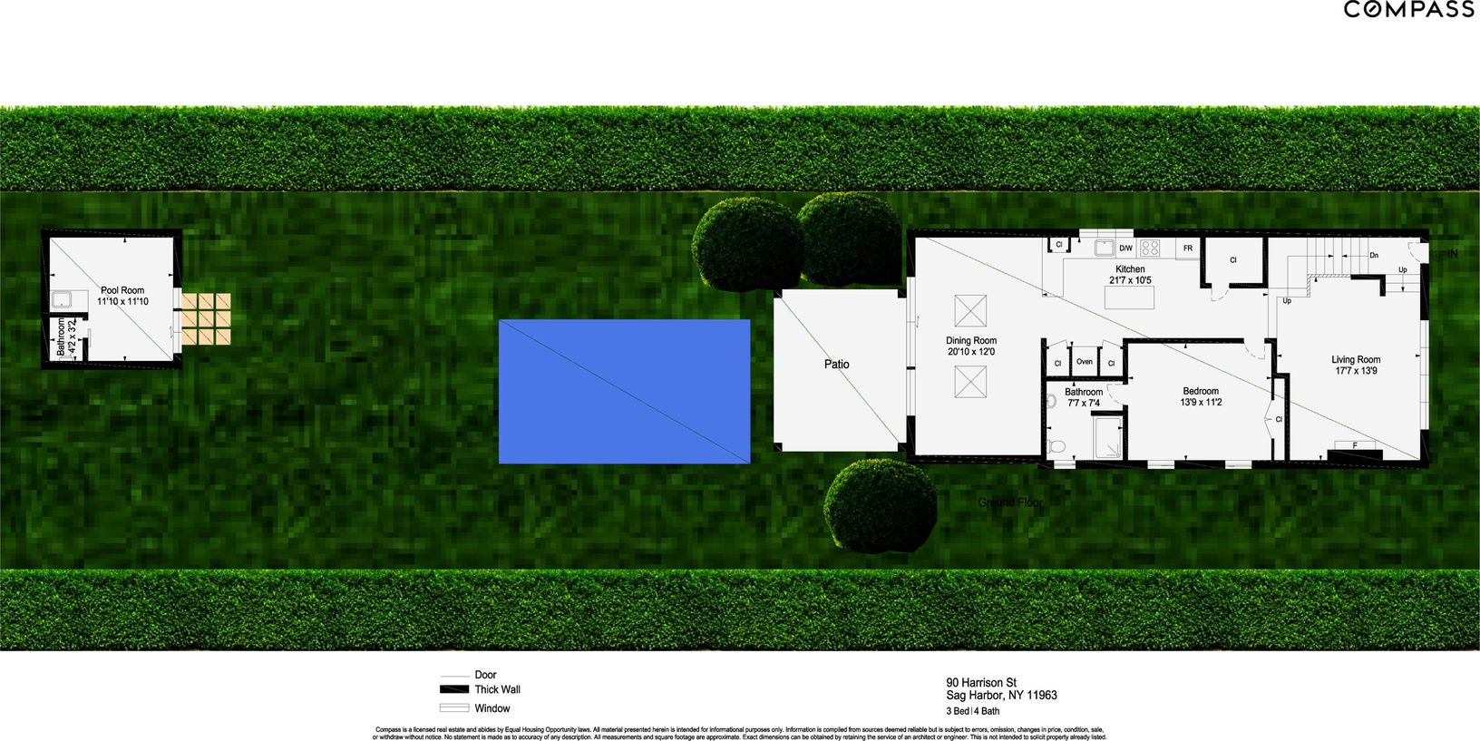 Words that come to mind: Turnkey. Charming. Well-designed and appointed. Tasteful. This 3 bedroom, 3 full bath with 2 half bath house has the best vibe. All the upgrades have been done, sparing no expense. Custom kitchen, two fireplaces--one in the great room at the rear of the house overlooking the wonderful gardens, pool and pool house and one in the front living room with views out onto a private front yard. Ensuite bedroom down and two ens