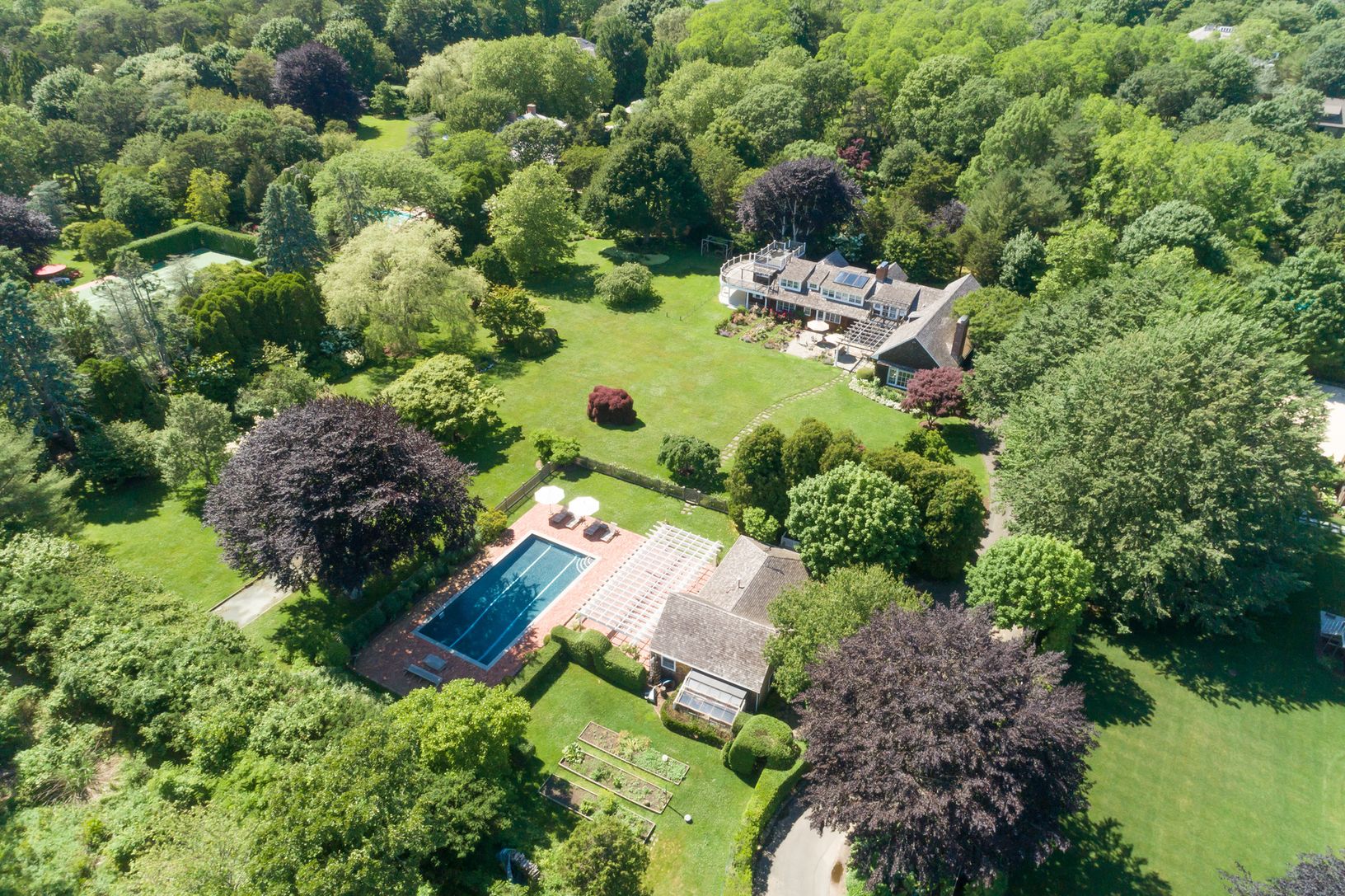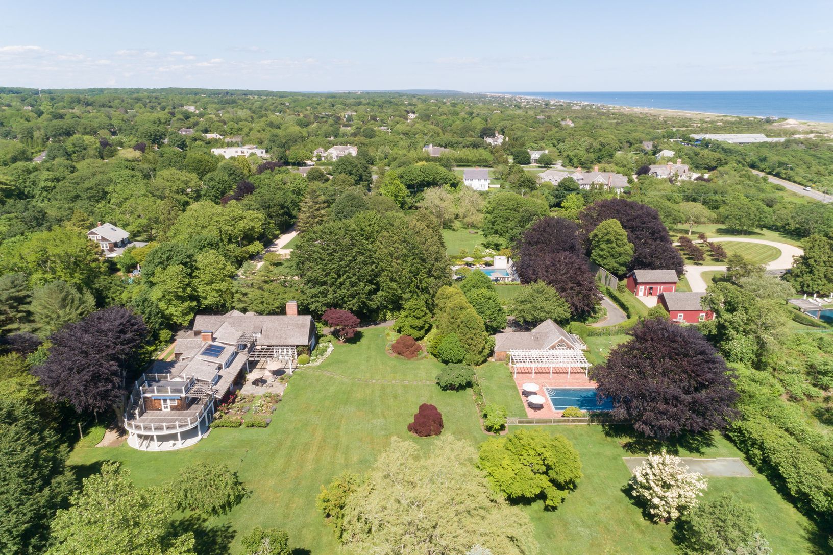 South of Further Lane off Indian Wells sits two plus acres of a majestic park-like setting with a meticulously maintained main house with lovely covered outdoor porches. Strategically placed on the property is a two car detached garage, heated pool and over-sized pool house all surrounded by mature trees and luxurious gardens. This is a very special property so close to the ocean and tucked away down a long gated driveway for privacy.