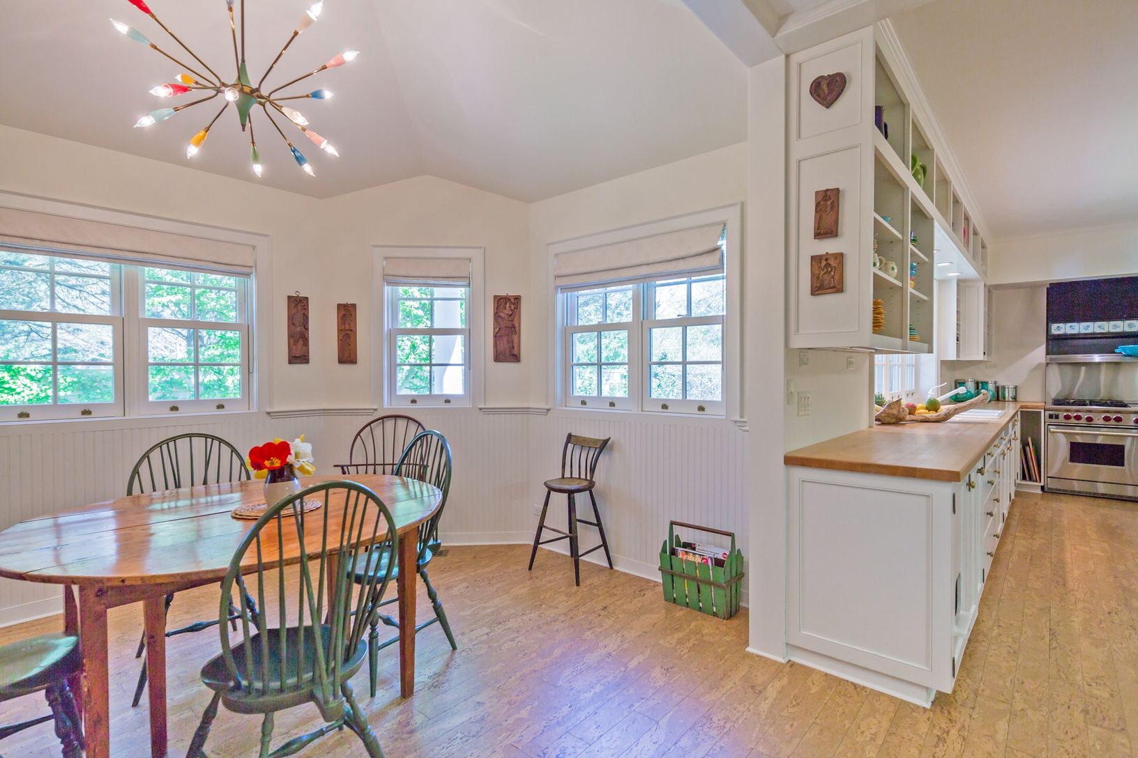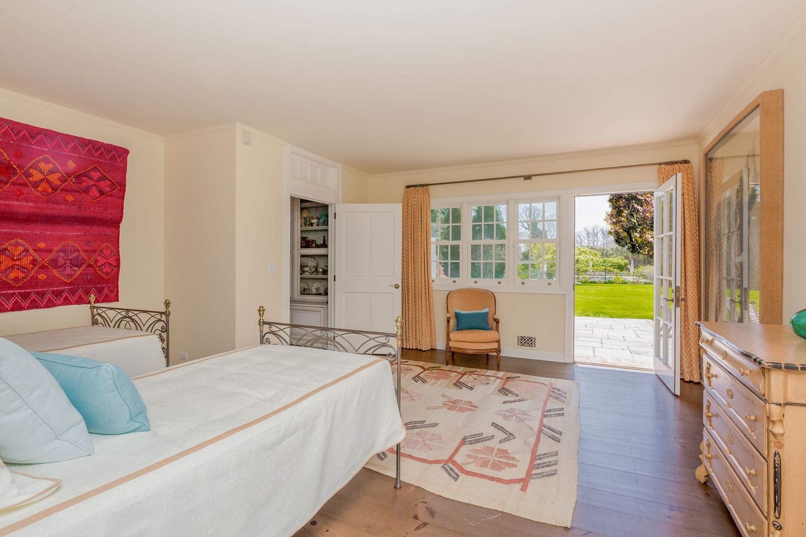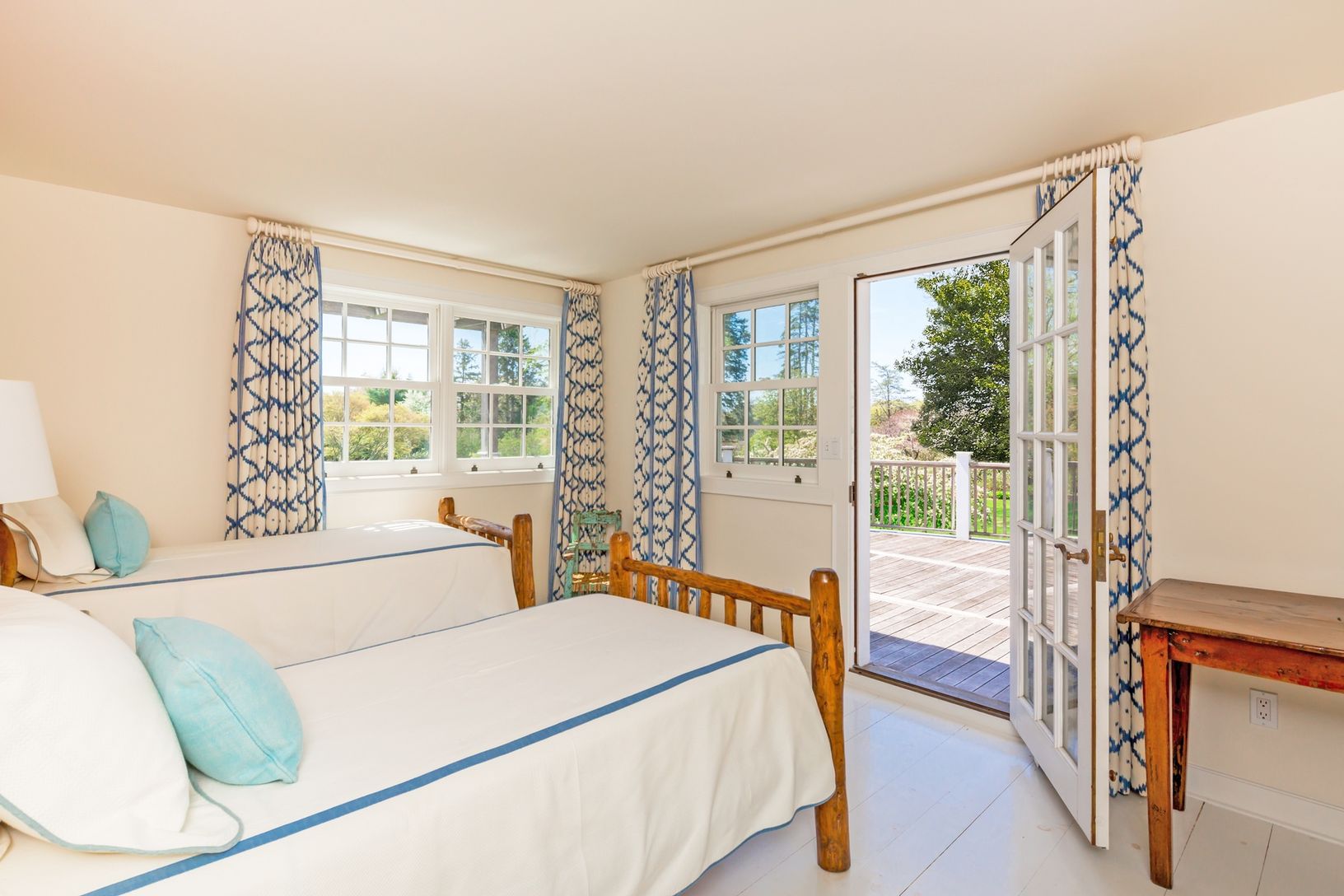 Hear the waves from this 2.3 acre secluded oasis located one residence away from the ocean beach. Discover this pastoral setting at the end of a long meandering driveway to serene privacy. The classic 1909 Traditional retains authentic charm with original wood beams that frame soaring angular ceilings, a massive living room hearth and wide plank pine flooring. The interior has excellent separation of space with private wings that hold 7 bedroo