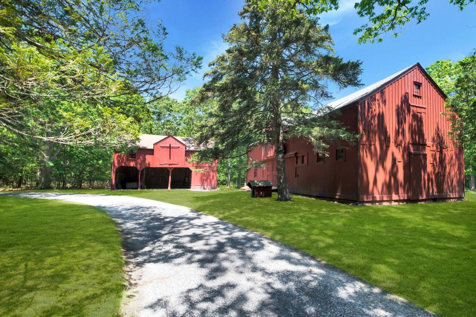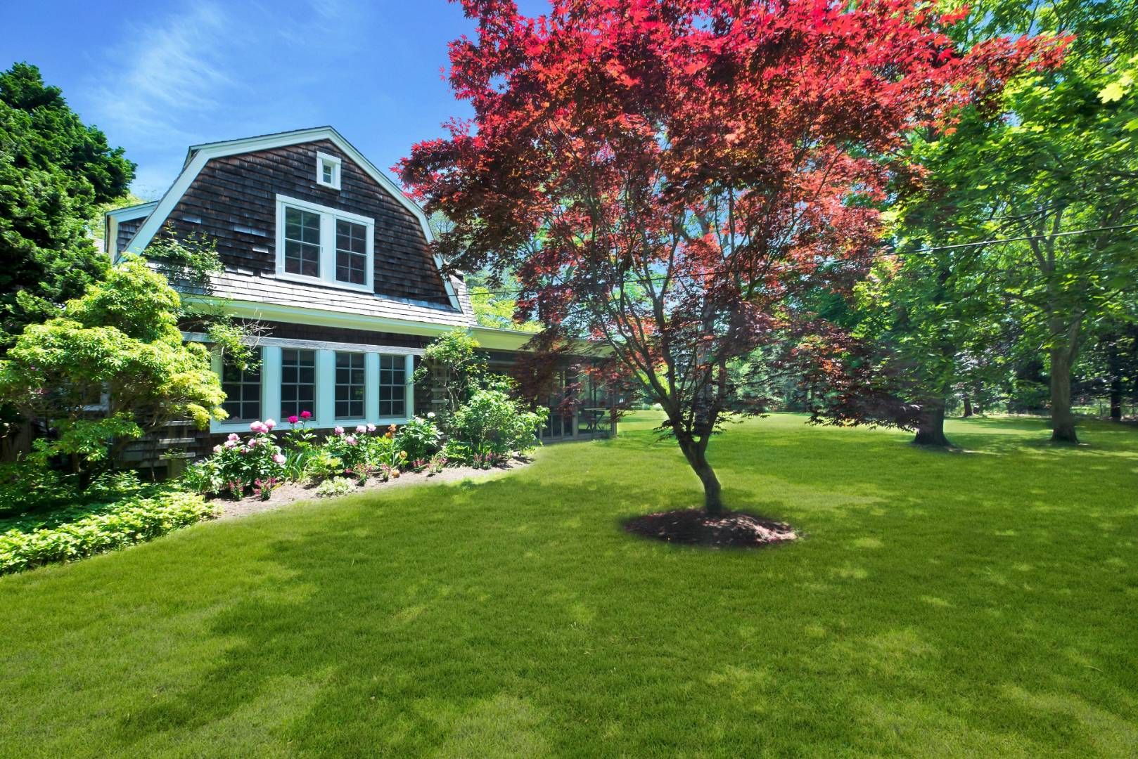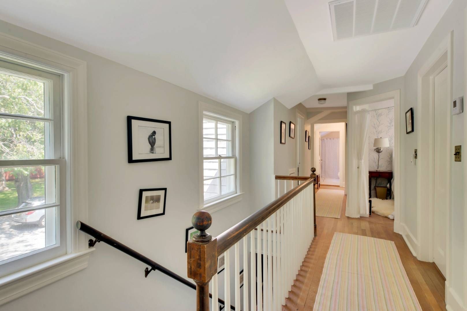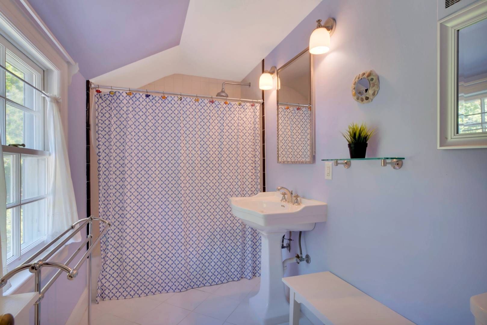 This historic residence, known as "Estling," is the main house of a very private, 14 acre compound south of the highway in Quogue. The first floor of the recently renovated, 4 BR/2.5 BA residence includes an elegant dining and living area with a wood-burning fireplace; an inviting study filled with comfortable seating and a piano; and a modern kitchen with stainless-steel appliances and seating for six around a farmhouse table. Upstairs are fo