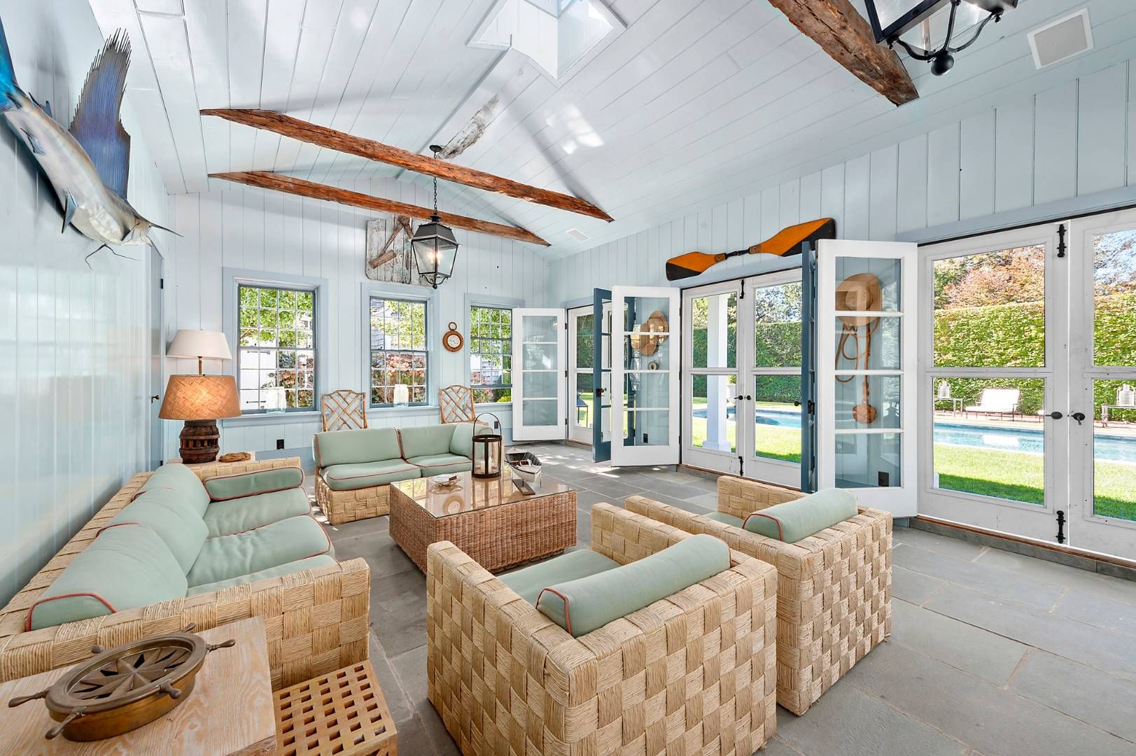 There are three enchanting structures on this expansive property. The restored traditional main house offers all that you will ever need for an enjoyable summer. It features four bedrooms, three baths, central air conditioning, top-of-the-line appliances and sound system. The additional guest cottage has one bedroom, one bath and living room. An
