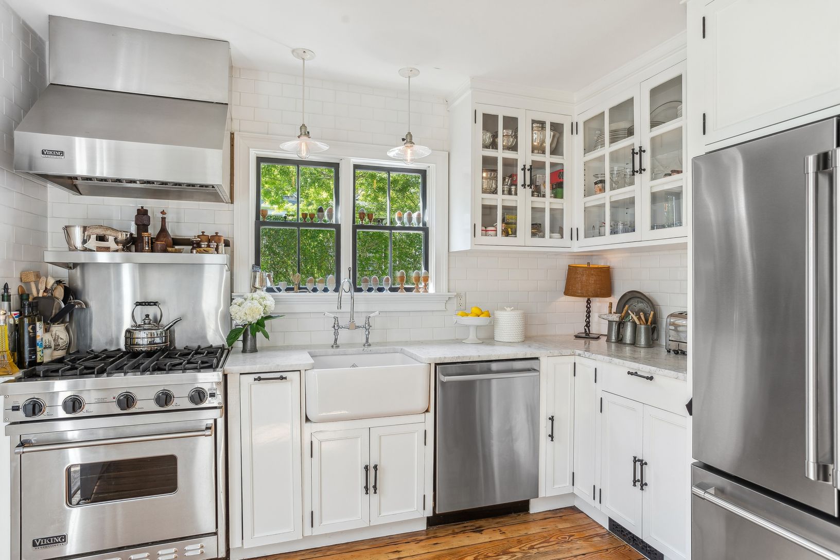This unique property consists of three buildings, including the main house, newly renovated one bedroom cottage, and large pool house, all situated on 1 half acre +/- in the heart of the village. The stunningly renovated, two-story main house was built in 1900 and offers three bedrooms, three and a half baths, living room, dining room, state-of-the-art kitchen and third floor great room with central air and sound system throughout. The perfect