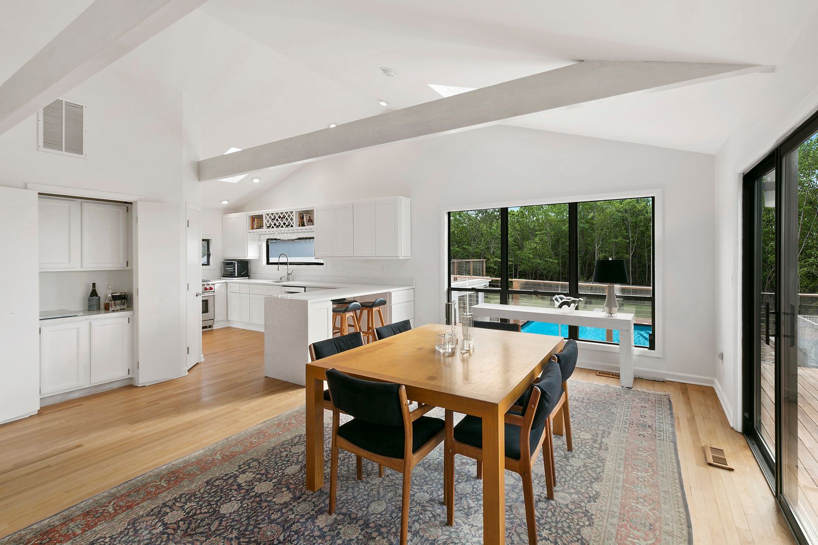 In many ways, a thorough renovation transformed this sprawling 6-bedroom, 5 bath home to better than new condition. A spacious +/- 4200 SF interior combined with huge mahogany decks, walkways and stone patios surrounding the 50’ swimming pool is a perfect setting for private enjoyment or lavish entertaining. On the upper level the completely open floor plan takes a glimpse of the bay and soaks in the glow of sunset from every vantage point. T
