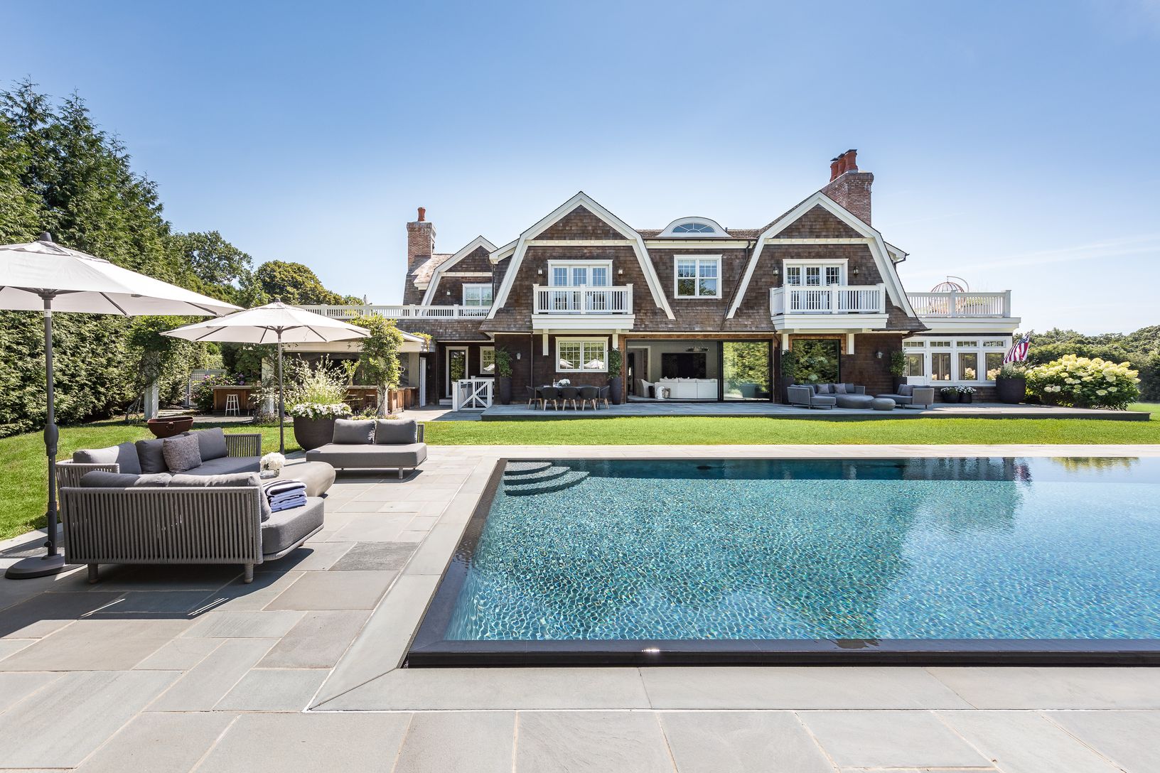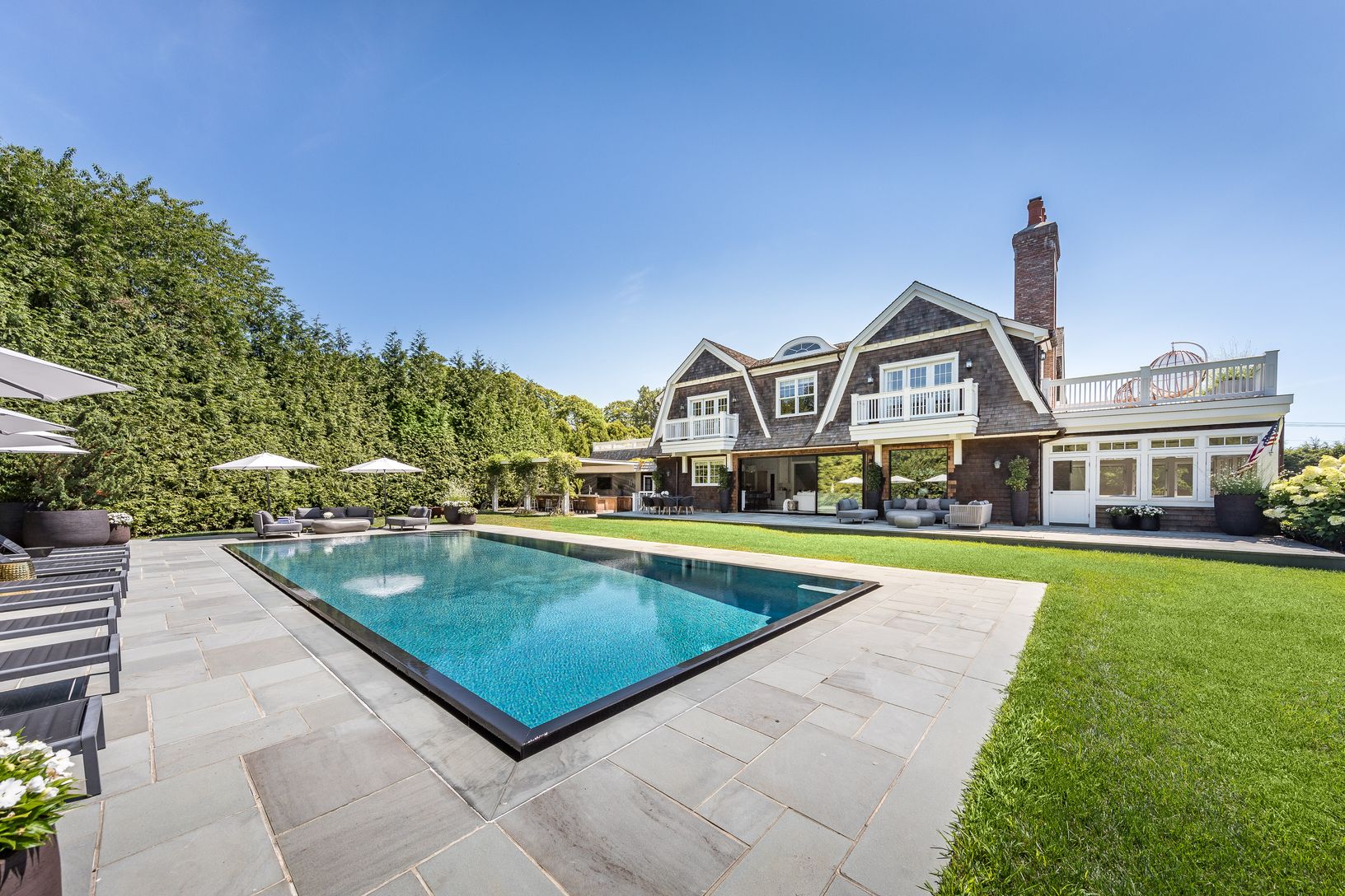 Nestled on 1.3 lush private acres in beautiful Water Mill rests this stunning 7 bedroom, 8.5 bathroom Hamptons retreat set across from a peaceful preserve. Resort-style living is yours to enjoy with a secluded backyard, bucolic farmland views, a sparkling heated gunite pool, and full outdoor kitchen for entertaining. A gated entry leads on to the sprawling property, which offers plenty of outdoor areas for lounging and recreation. Plus there's