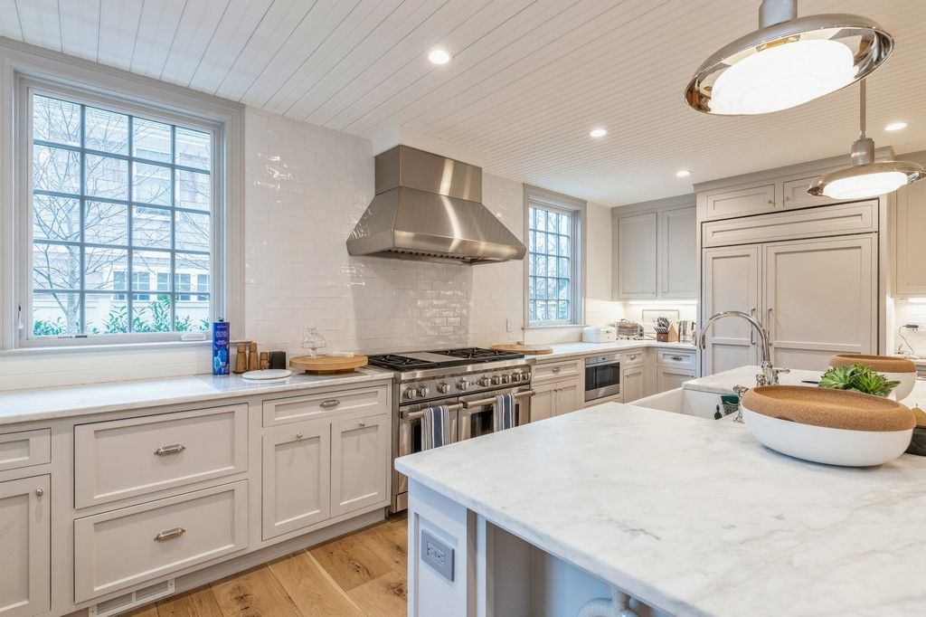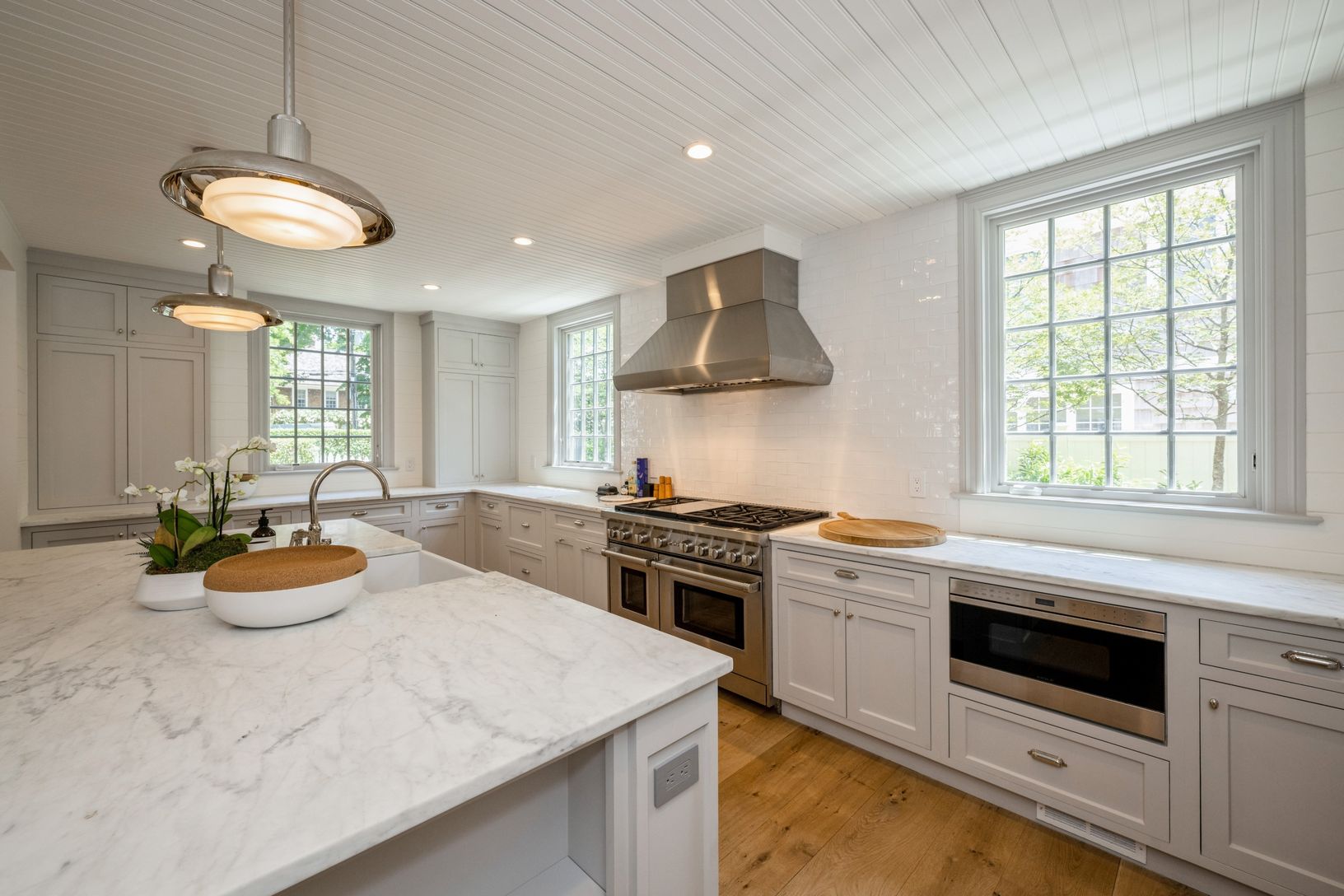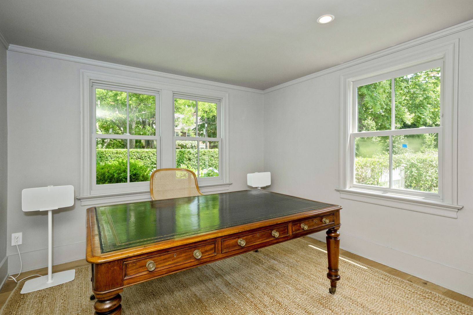 Only a few moments to Main Street or a few blocks to the beach, this beautifully designed Traditional style estate is ready for immediate August occupation. Boasting 6 bedrooms, 5 full baths and 2 half baths in the main house and a large pool house with a full bath, living room with kitchenette and bonus hang out spaces, there is room for everyone. Enjoy the saltwater pool with electric cover, the lovely gardens, relax on the covered porch wit