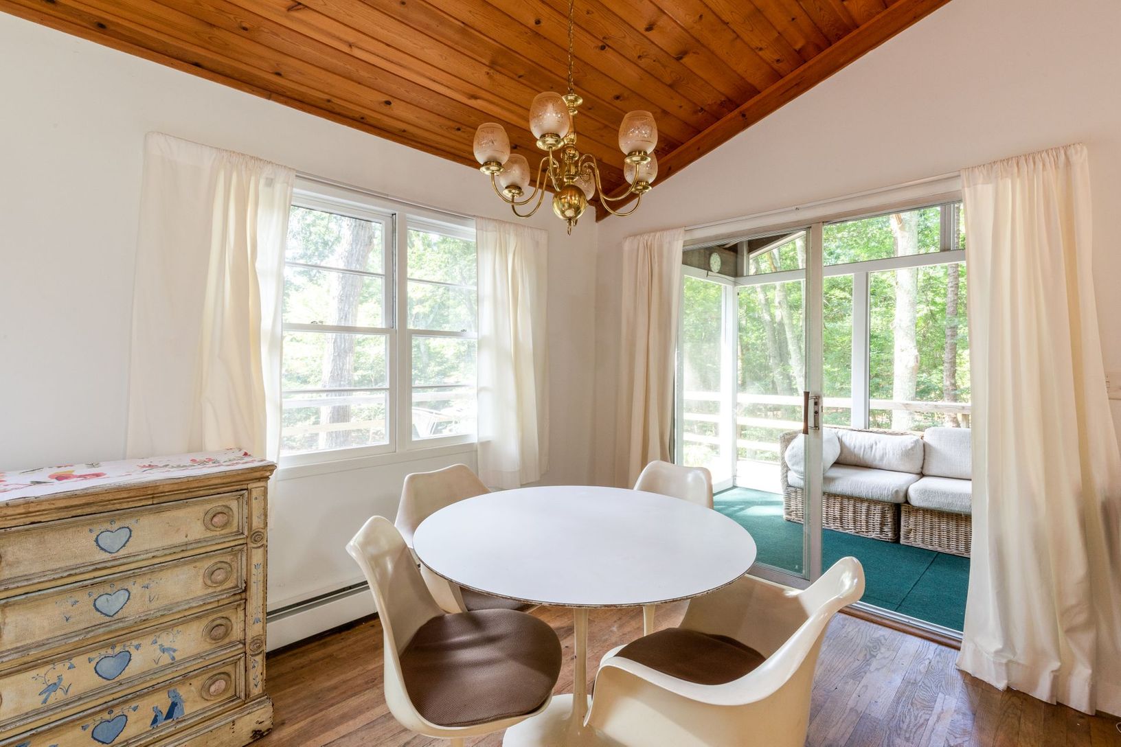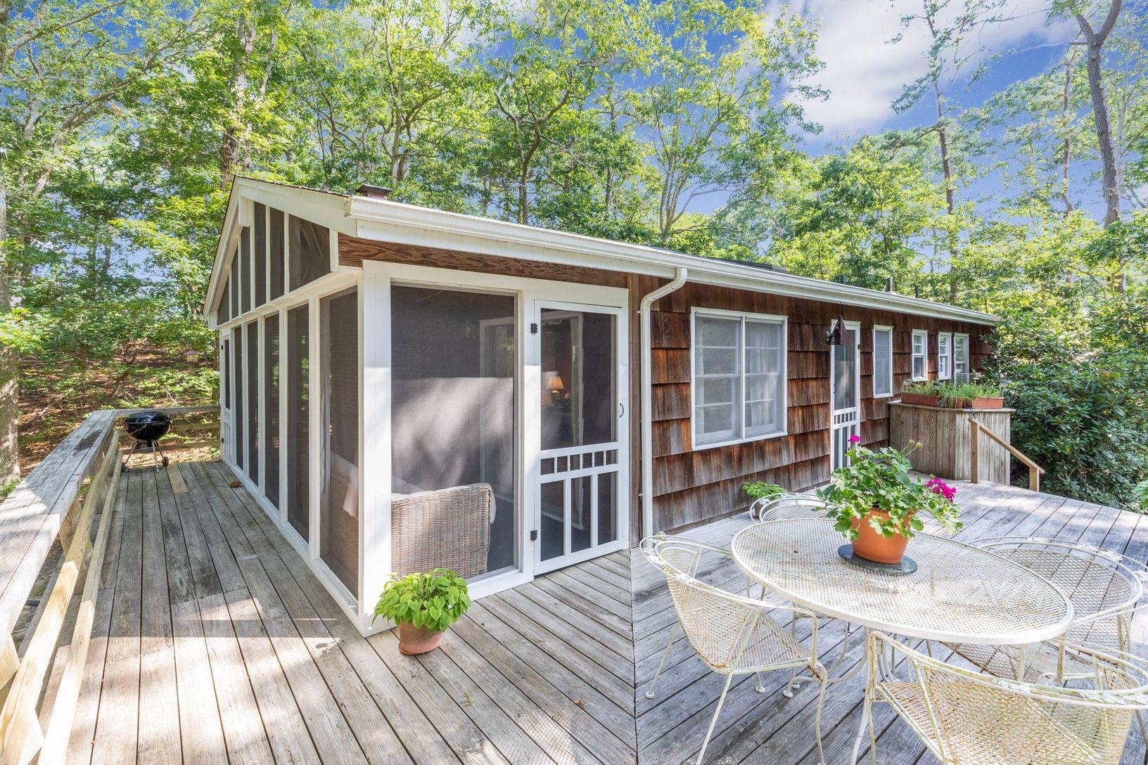 Delightful Hampton Cottage Set on .58 of an acre Flag Lot. Open concept living with vaulted ceiling, skylights, and wood burning fireplace has a wrap around deck and screened porch for outdoor entertaining and peaceful relaxation. There are 3 bedrooms, and with 1 having a half bath. This is a very sunny lot with plenty of room to expand or add a pool. You will feel like you are in a rural retreat, yet so close to beaches, restaurants, shopping