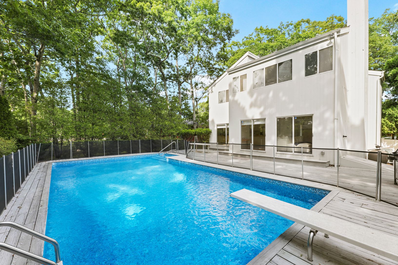Rest. Relax. Recharge. Do it all at 91 Oneck Lane in Westhampton this August! This beautiful contemporary has all the amenities and more to provide you with the best Hamptons summer. Sitting on .65 acres & fully fenced, 91 Oneck affords 4 bedrooms, 3 full bathrooms, an eat-in-kitchen, dining room, and living room with fireplace. The first floor has an open-concept floor plan featuring sliding glass doors leading directly to the expansive b