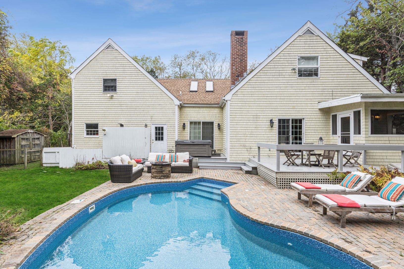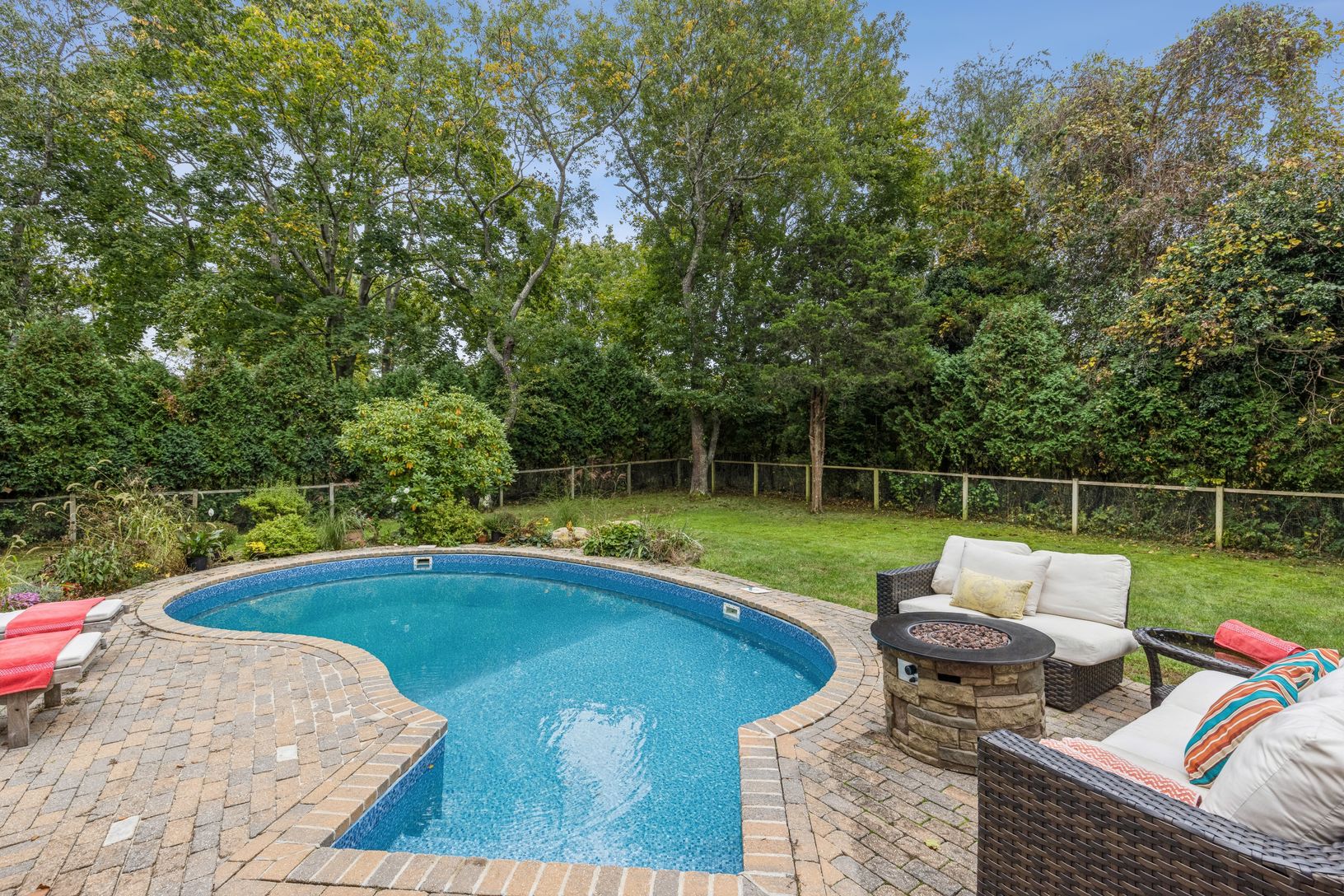 Enjoy being close to one of the most popular sunset beaches on the East End. This smartly furnished four bedroom, three bath home has two en-suite bedrooms, granite kitchen, interior skylights, beverage cooler, stacked stone fireplace and finished lower level media room. Outside, find a salt water pool and spa, firepit, enclosed outdoor shower with full length panel faucet, driveway gates and private fenced yard. This coveted North Haven water