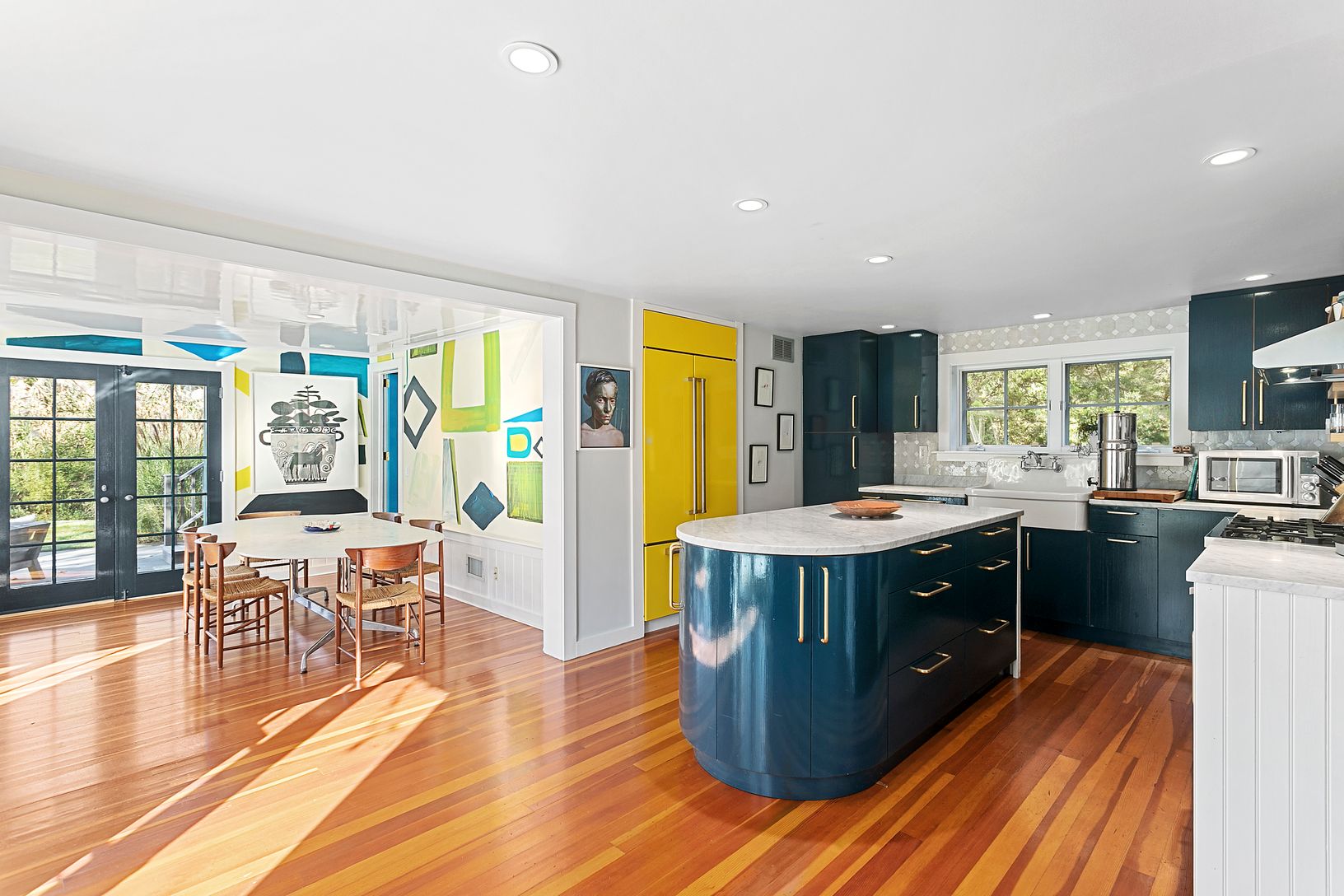 This stylish Northwest Harbor home, designed by award winning architect James Merrell, is a private paradise. Conveniently located close to East Hampton and Sag Harbor villages with water access a stone's throw away, this 4 bedroom, 2 bath home is an artistic blend of country and Tribeca lifestyle. Upon entry, there is a gracious living area with fireplace that leads to the up to date country kitchen, dining area and second living area. In add