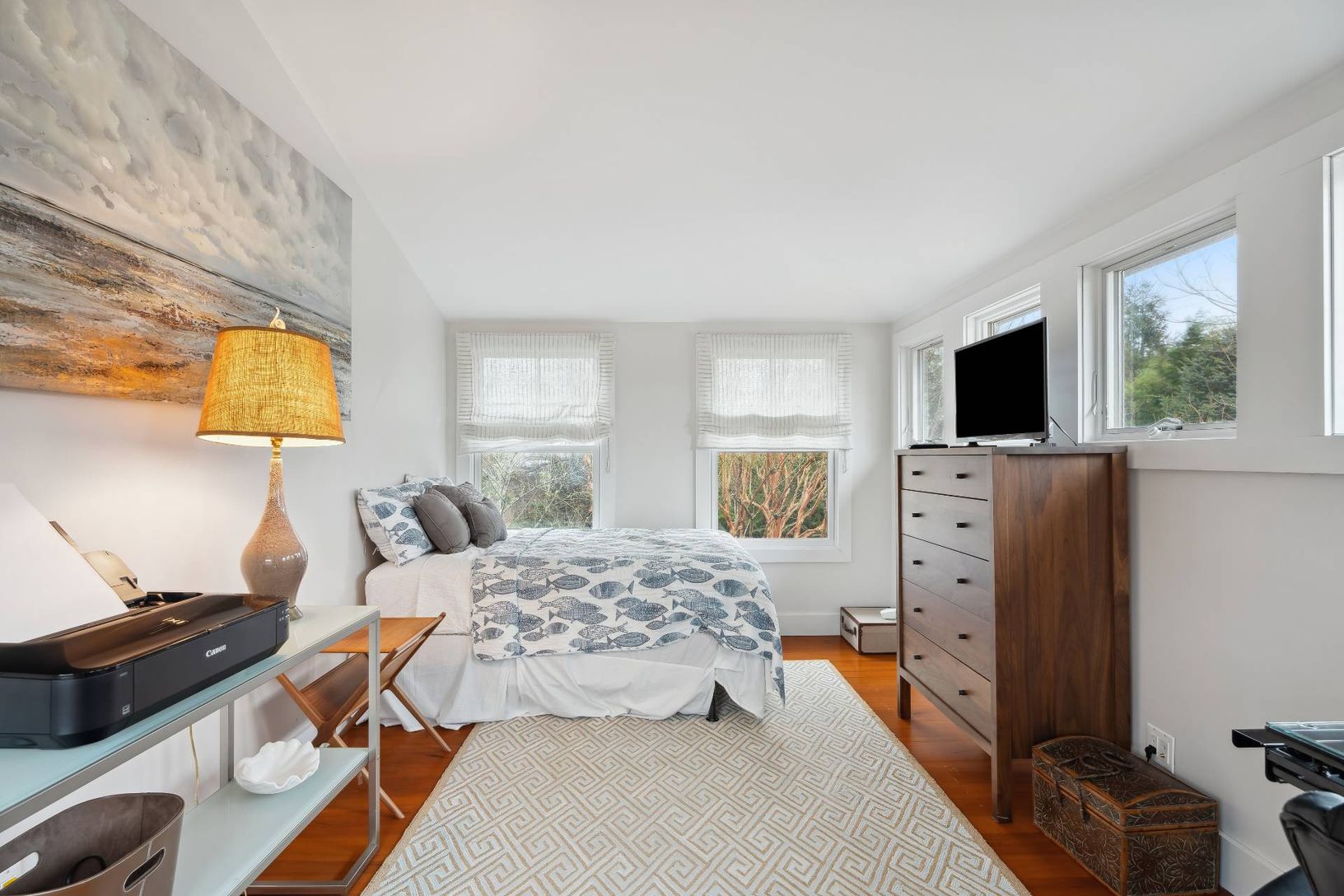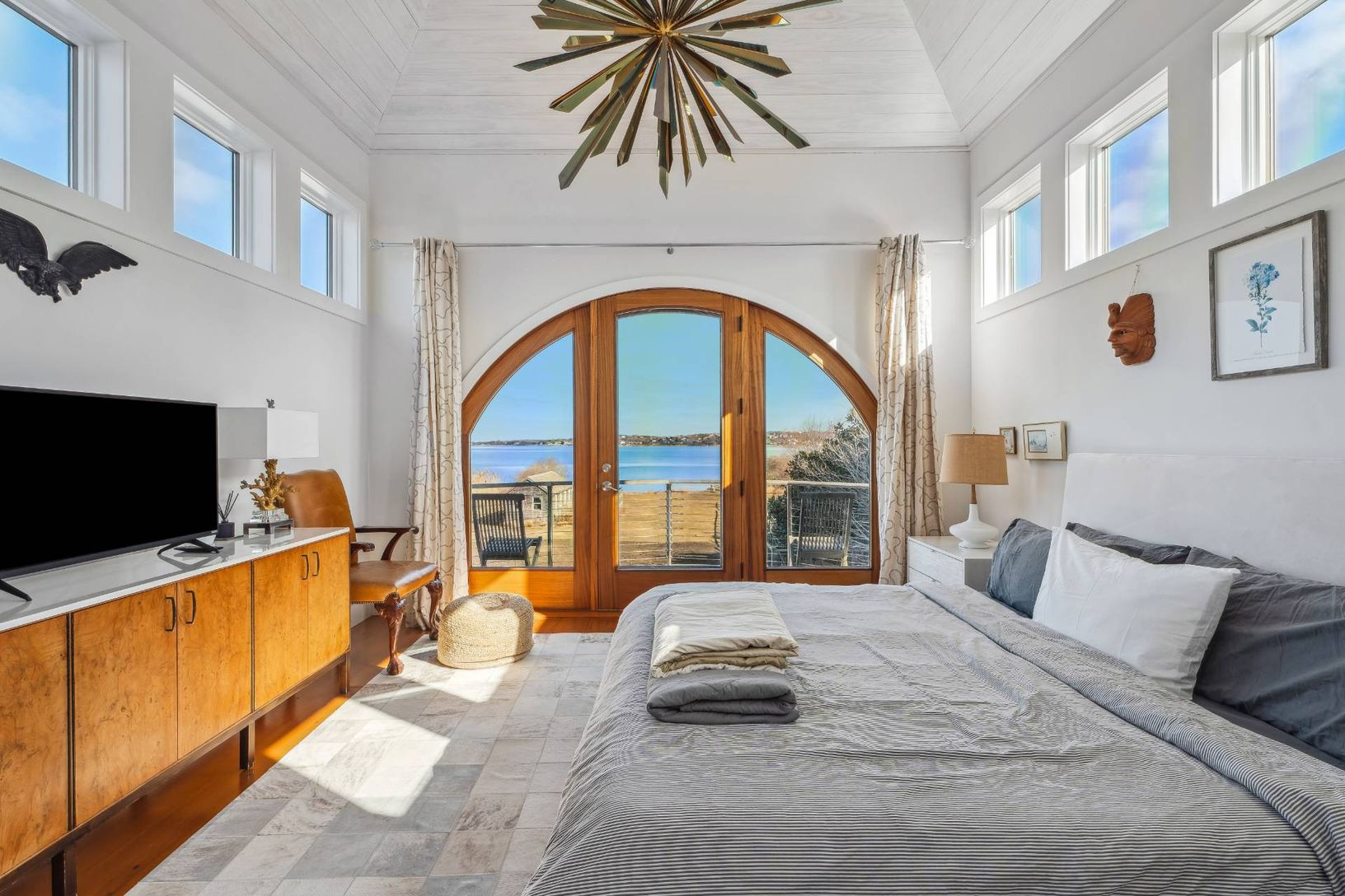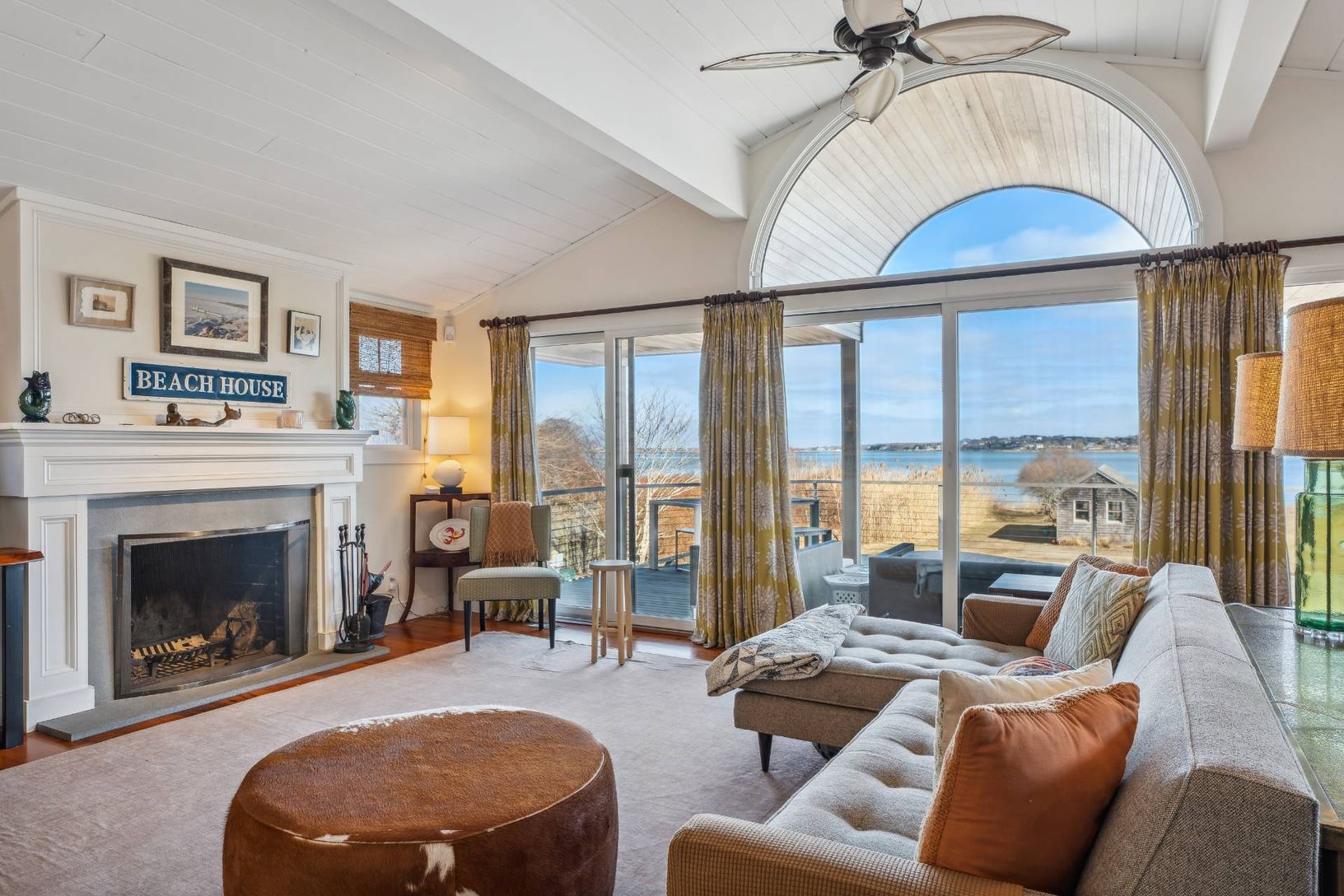 Nestled on a generous waterfront plot, this enchanting 4-bedroom cottage boasts stunning views of Lake Montauk. The expansive open-concept living space is graced with a fireplace, vast windows, and sliding doors that frame the lake's serene beauty. Seamlessly connected, the living area extends to a dining space and kitchen, all benefiting from the picturesque backdrop of the property and lake. On this main level, two welcoming guest bedrooms a