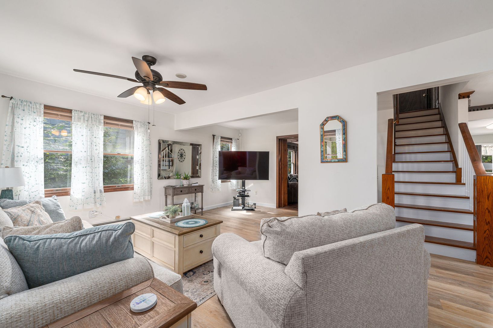 Welcome to 920 Bray Avenue in Laurel! This renovated Cape offers 3 bedrooms, 1.5 bathrooms, and a versatile layout with an updated eat in kitchen with newer appliances & coffee bar, living room, dining room, office with built-in shelves, den with cozy wood-burning fireplace with wood closet, and a powder room on the first floor. Upstairs are three bedrooms and a full bath. The basement provides over 600 sq ft that can be legally finished,