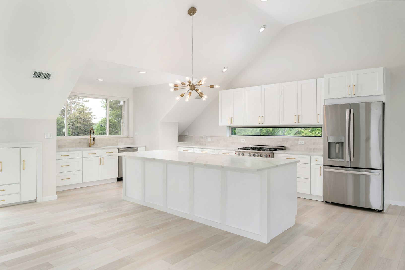 No expense was spared on this gorgeous light-filled 4400 square foot home, which boasts two fireplaces, a massive open kitchen with 40 square foot quartz island and expansive 180-degree water views.