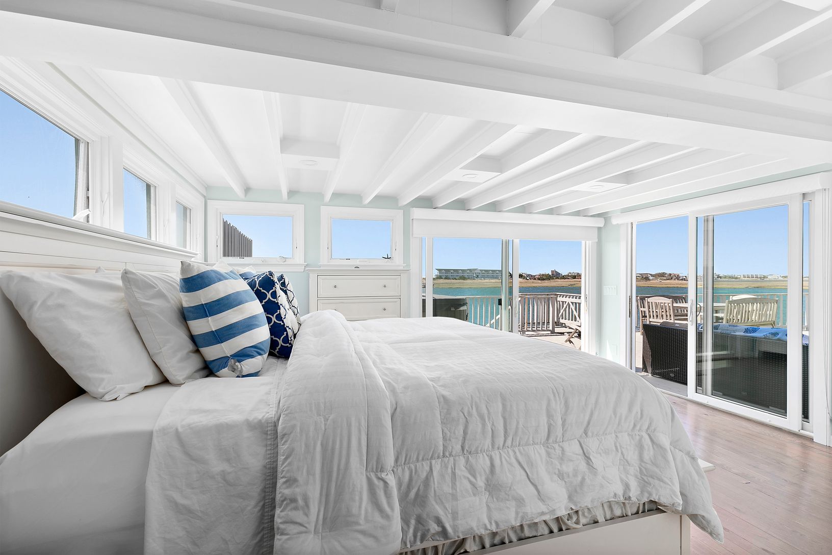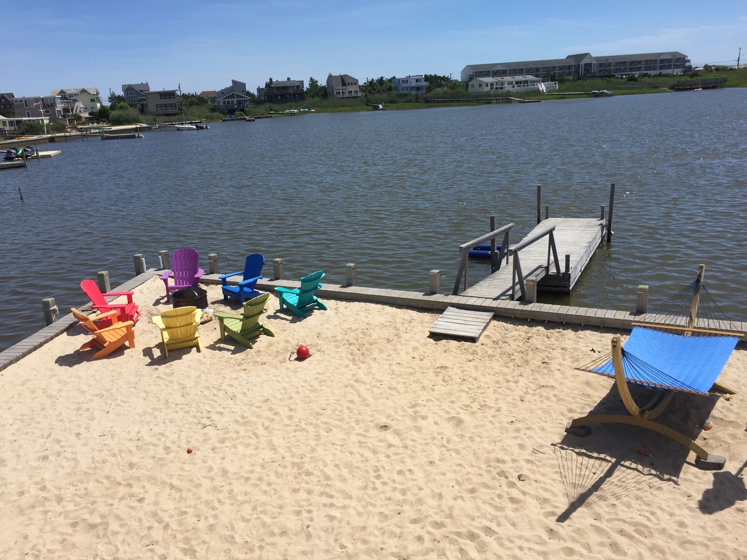 Waterfront paradise out your back door. Enjoy breakfast in the updated kitchen & spacious living area with its unobstructed water views. Dine on the large back deck with fire pit, comfortable seating area & large hot tub overlooking the bay. Launch a paddle board, kayak, or raft from your own floating dock. Or if you prefer, the beautiful white sand beaches on the Atlantic Ocean are a few blocks away. Nearby Dune Road is - a popular ro