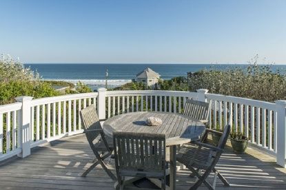 Stunning views of the Atlantic Ocean are offered throughout this beautifully designed 3,600 +/- sq. ft. traditional set high up, across the street from the beach. An elegant floor plan offers an open gourmet kitchen with top-of-the-line appliances, stone fireplace, and dining area all with white water ocean views. The family room has a fireplace and French doors open to an oceanside deck perfect for outdoor dining. A den with full bathroom and