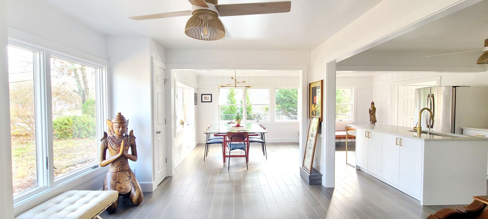 Welcome to this charming and newly renovated two bedroom, two bathroom ranch in Flanders! Step inside to discover a thoughtfully designed interior exuding charm and sophistication with modern finishes and plenty of natural light. The open-concept living area offers a warm and inviting atmosphere that is perfect for entertaining, while the spacious bedroom provides a cozy retreat. 93 Temple Avenue offers a detached cottage that affords a fully-