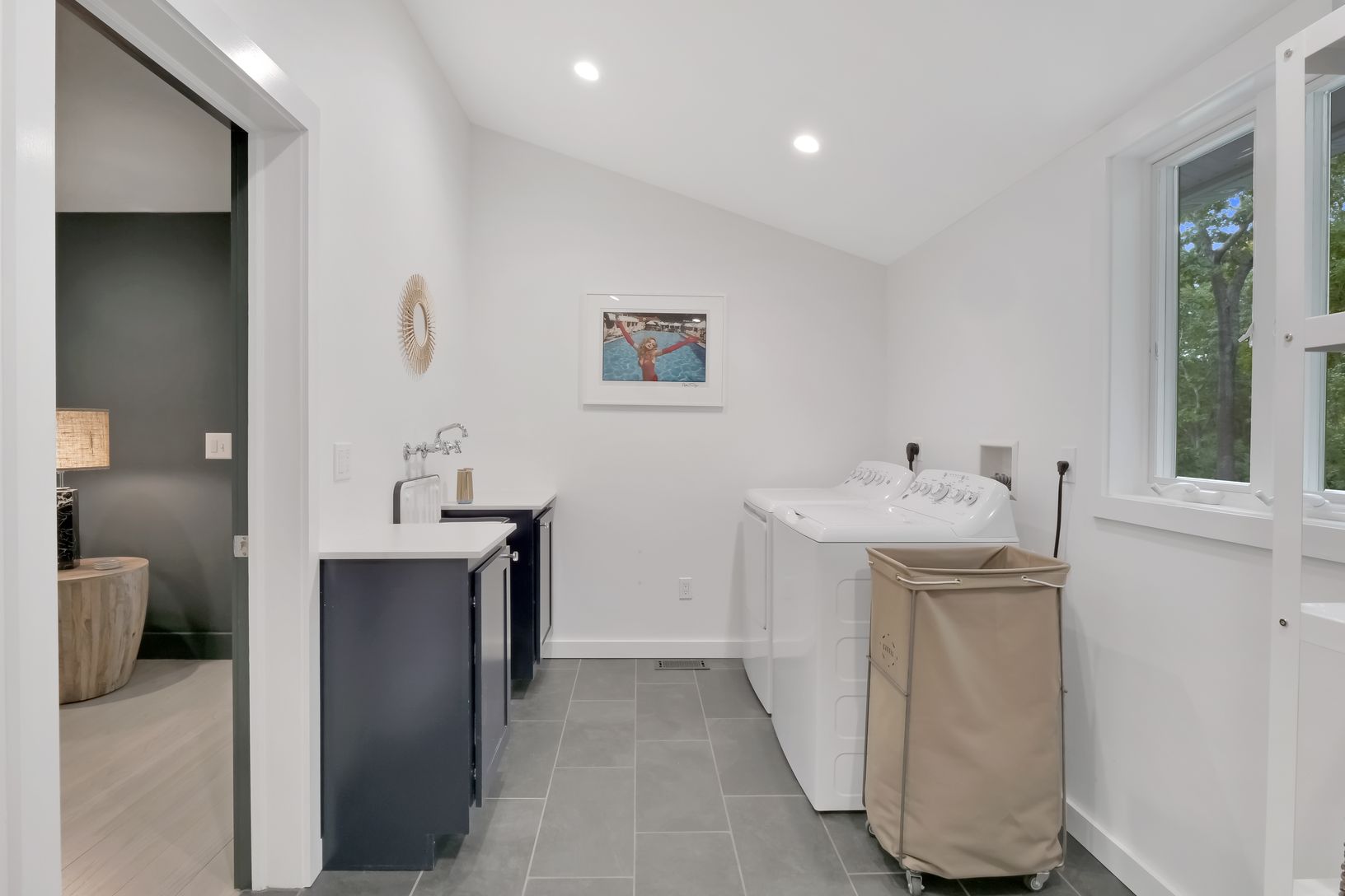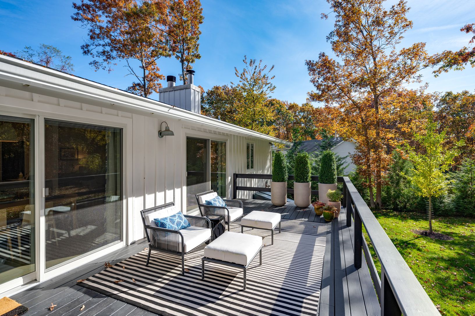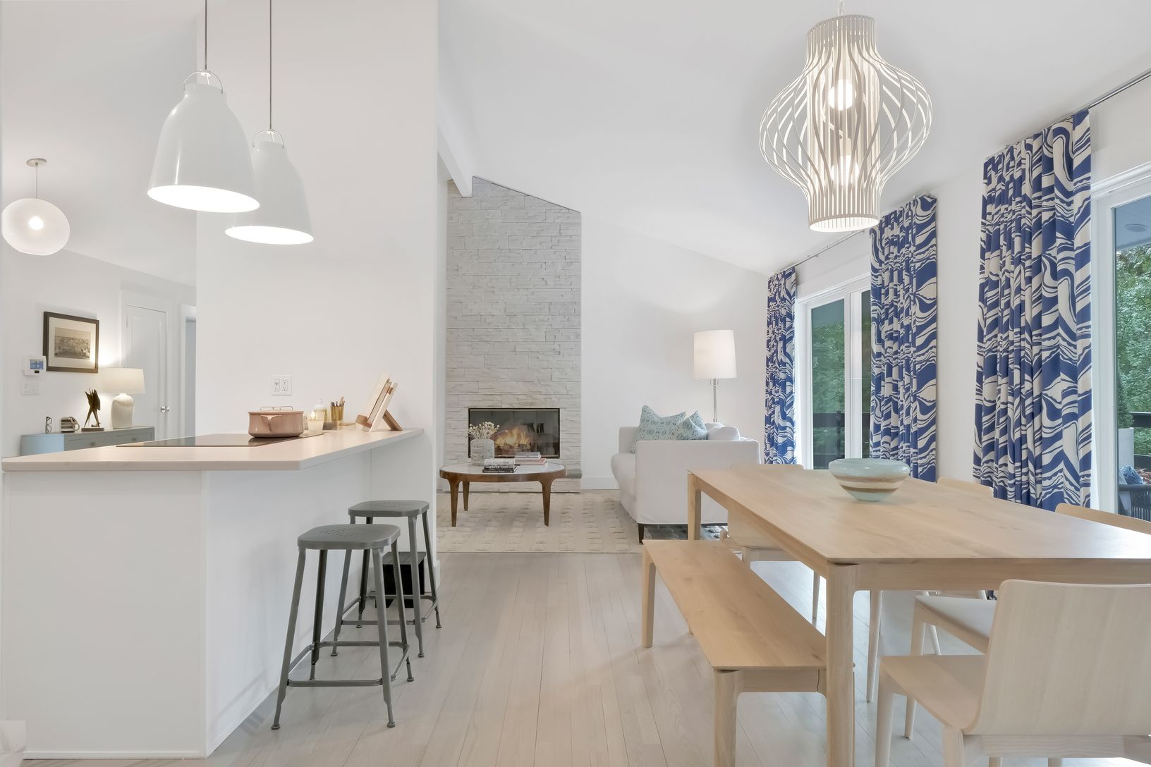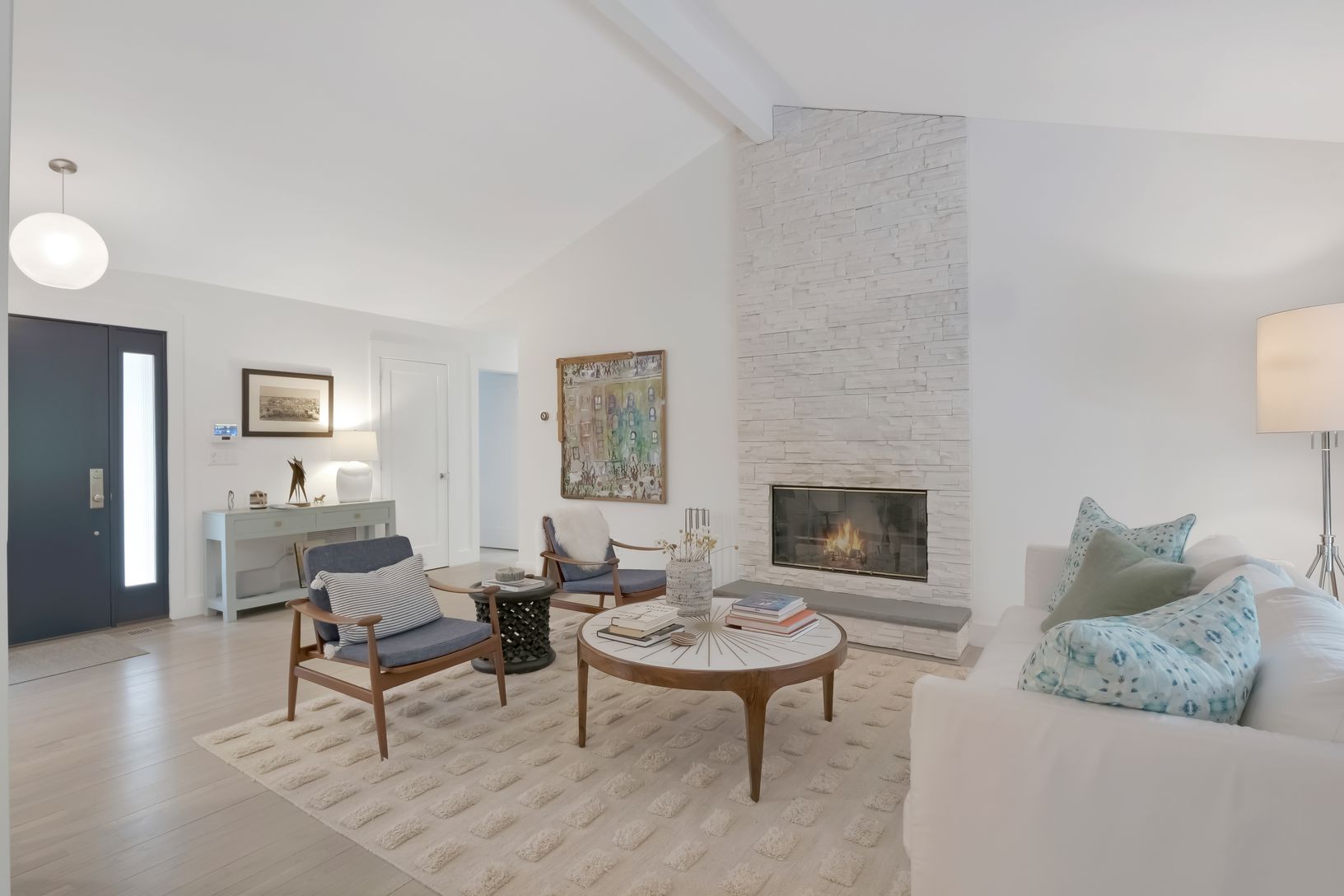 Nestled in a quiet Sag Harbor Village neighborhood, this move-in-ready retreat comes with plenty of perks-all new kitchen and bathrooms, vaulted living room with wood-burning fireplace, a cozy media room/den, and huge backyard views, thanks to reserved land adjacent to the property. Top-line choices were made during the full renovation of this designer's home: Driftwood gray oak floors run throughout the house. Black stainless-steel KitchenAid