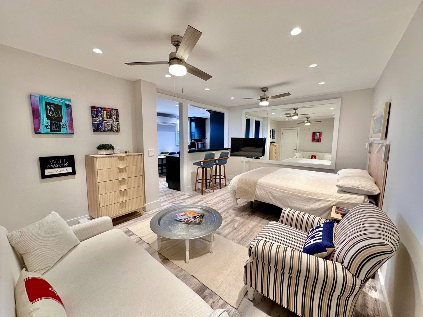Available Year-Round. This completely renovated studio offers bright, efficient living with an open layout and abundant natural light. The renovation includes a brand-new kitchen, updated wiring, a new air-conditioning unit, and in-unit laundry, along with a dishwasher and microwave for everyday convenience. Thoughtfully designed storage maximizes the space, while the eat-in kitchen flows easily into the living area. Step outside to a private