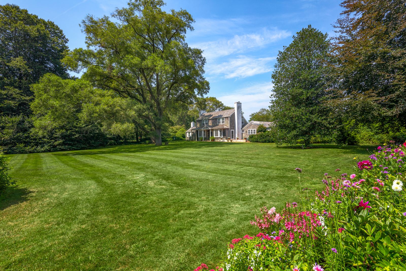 Located on one of the most desirable streets in East Hampton Village. This Scheffer home is sited on a sprawling 2 plus acres with rolling lawn graced by bucolic gardens and several enormous specimen trees. Most notable are the magnificent Copper Beech and Chinese Elm trees. This stylish shingled tradition truly captures the elegance and essence of the Hamptons. Upon entering through the vibrant red door, you are welcomed into the living room
