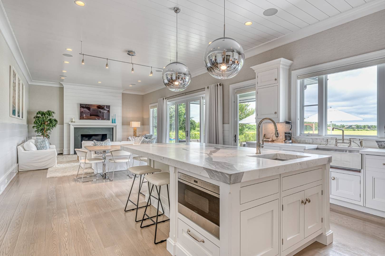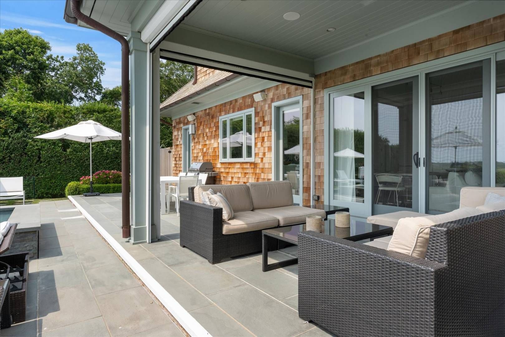 Set in the heart of Wainscott less than a mile from the Atlantic Ocean, this contemporary shingle-style 6 bedroom, 6 full and 2 half bathroom residence by noted builder, Michael Frank, embodies elegant Hamptons charm, superior craftmanship, expansive pastoral views, and premium south-of-the-highway proximity to the east end's finest beaches, farms, and riding stables. Designed and constructed for pure comfort and refined living, no detail was