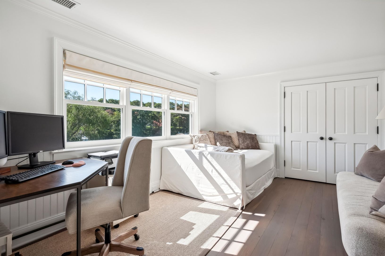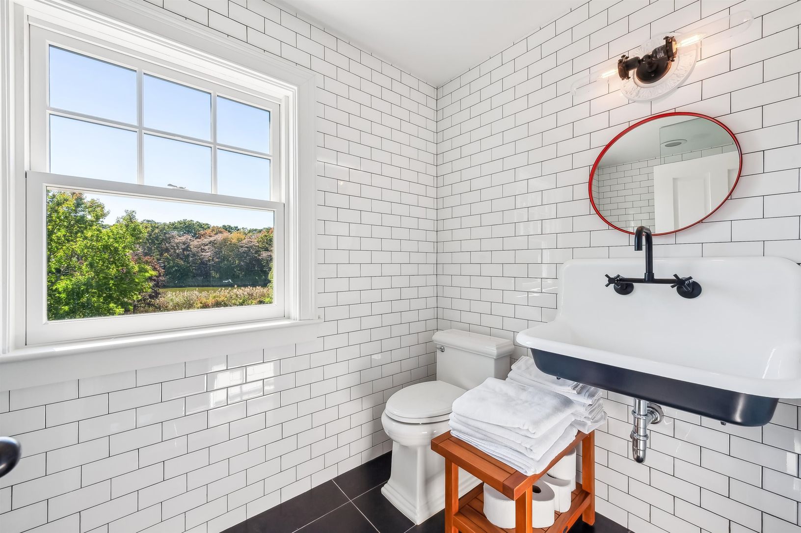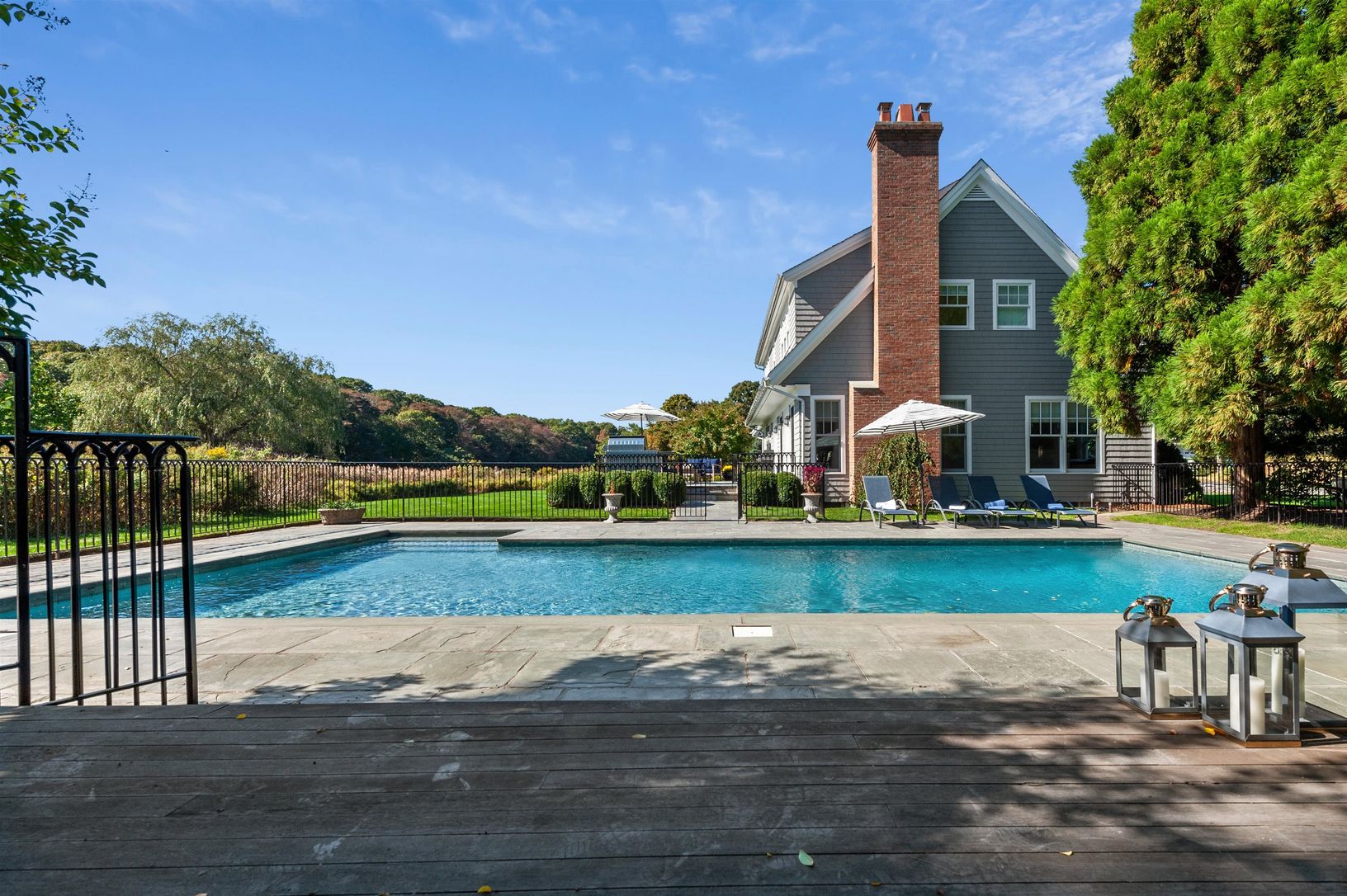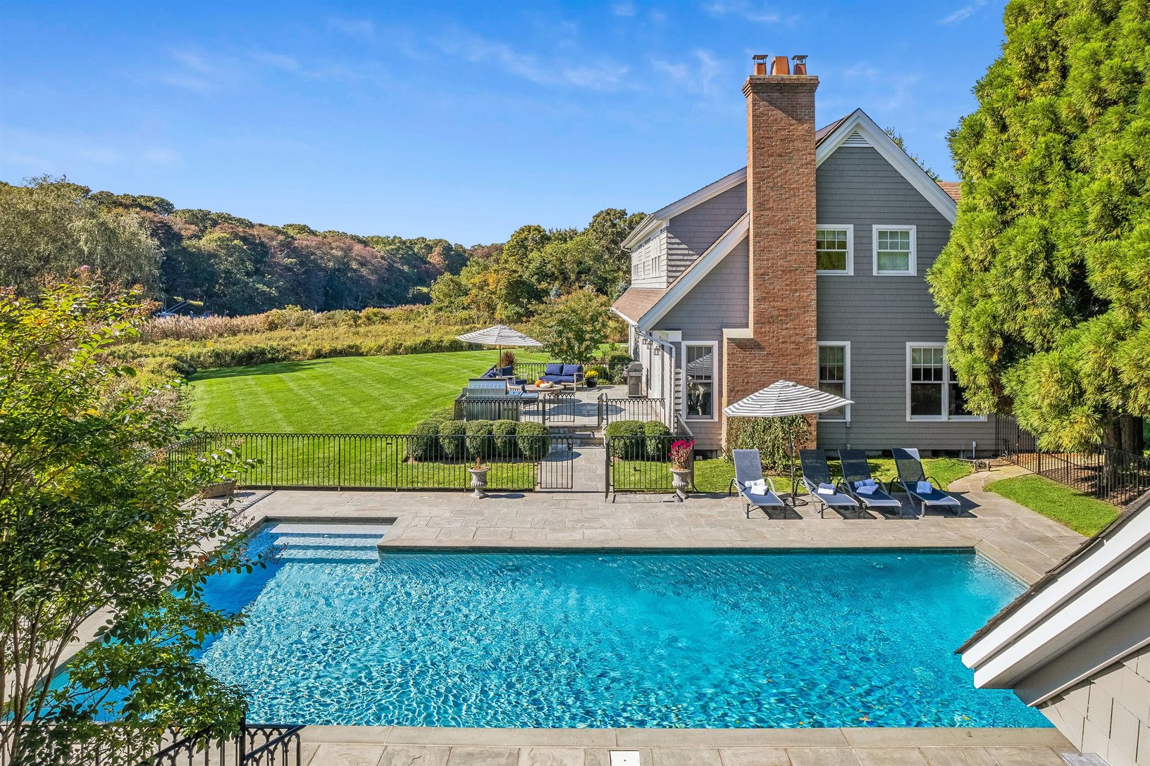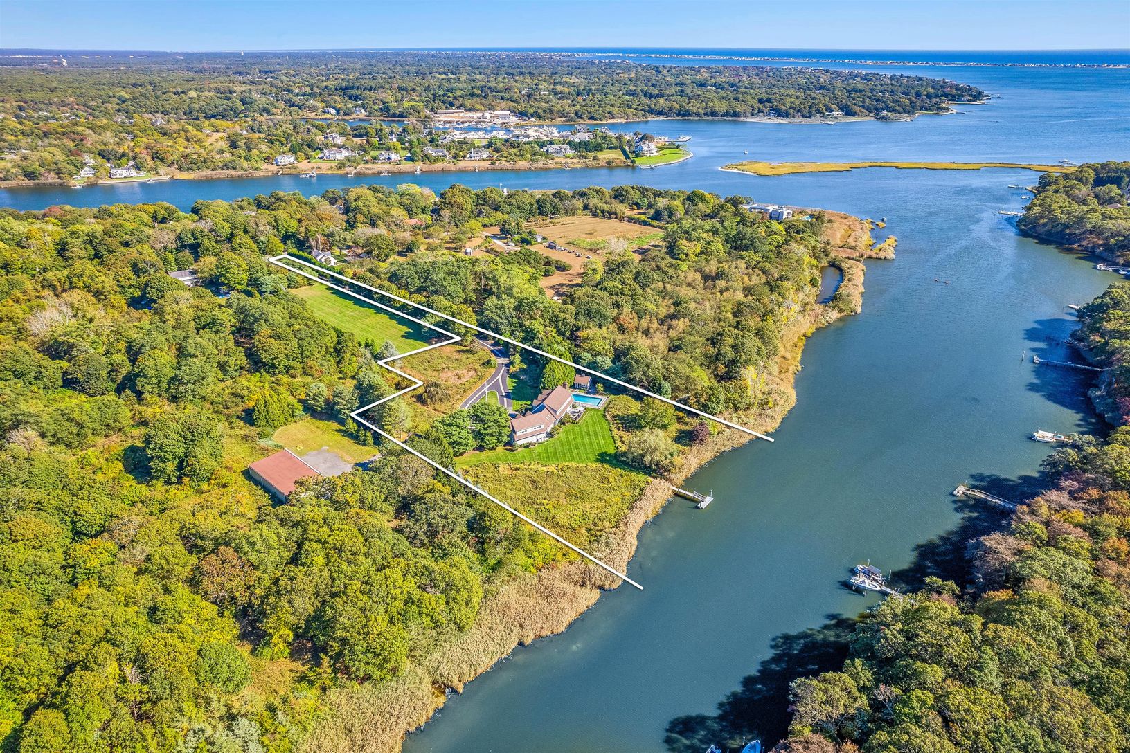 Just 75 minutes from Manhattan, behind electronic gates and down a private drive, awaits an extraordinary Eastport estate-where timeless Hamptons tradition meets modern craftsmanship. Designed and built by its owner, this 6,000± square-foot waterfront residence rests on 2.6 acres of lush, landscaped grounds offering complete seclusion and deepwater access to the Atlantic. Bathed in southwestern light, the property celebrates year-round sunsets