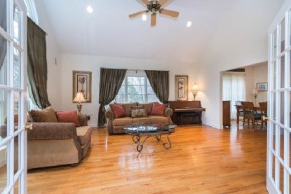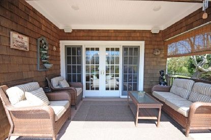 Located in one of the most beautiful areas in Southampton is this gracious 3,500 +/- sq. ft. traditional situated on 1.7 private acres. Pause on the front porch to take in the natural beauty of the site, then enter through a large foyer with a spiral staircase to the second floor. The grand living room with French doors flows smoothly into a formal dining room with large sliders leading to the outside deck with covered porch. A bright and wel