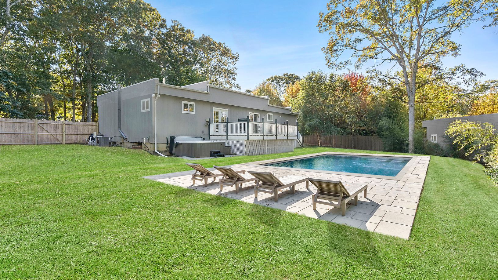 Privately located down a 450ft long driveway this property offers an immaculately reconstructed main house with a legal dethatched guest cottage. The main house has 3 bedrooms, 2 1/2 baths, open living room, fireplace, dining area, CAC and a private outside deck. There is a new heated pool and jacuzzi. The legal guest house offers a full kitchen, living room, dining area, 1 bedroom,1 bath, laundry room and an outside brick patio. Easily acces