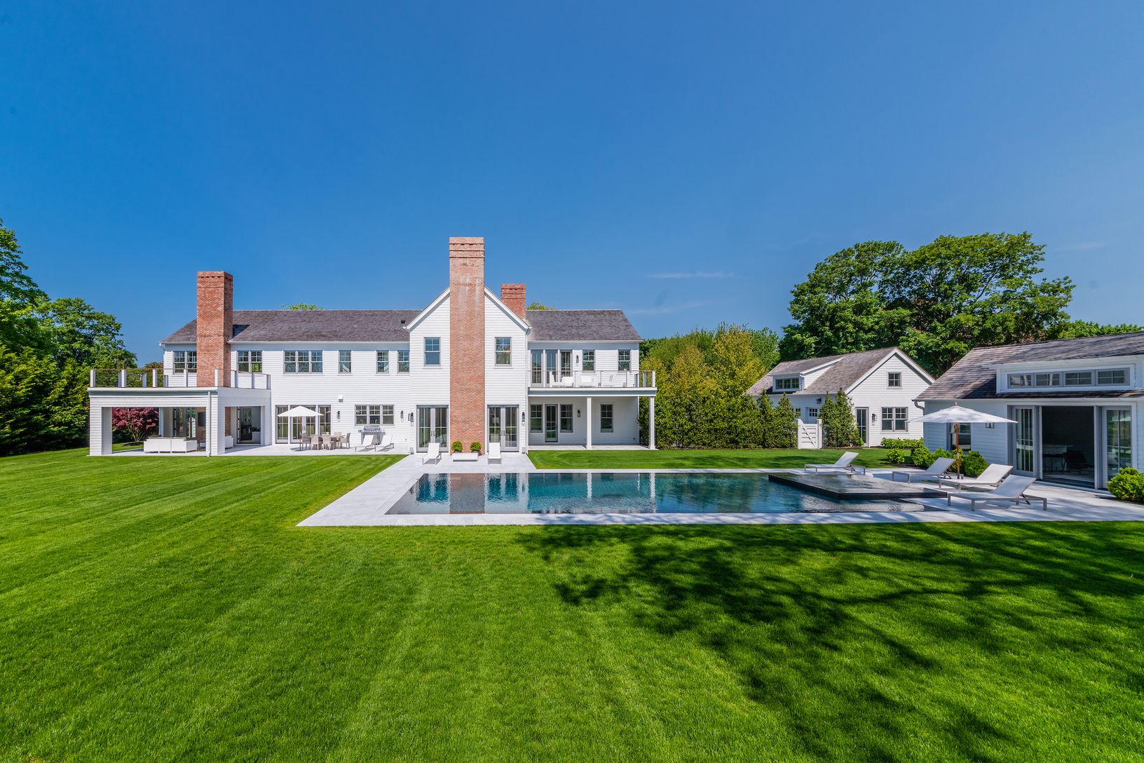 Newly constructed by the highest standards this gated 10,000 sq. ft. Modern Farmhouse conveys an innovative beachy feel of elegance and comfort offering clean lines on three spacious levels reached by an elevator. Very close to the beach on coveted Ocean Road the house is located on 1.4+/- acres and consists of 8 bedrooms, 10 full bathrooms and 2 powder rooms. Exquisite infinity edge gunite, heated pool 20' x 50', plus 10' x 10' spa, outdoor s