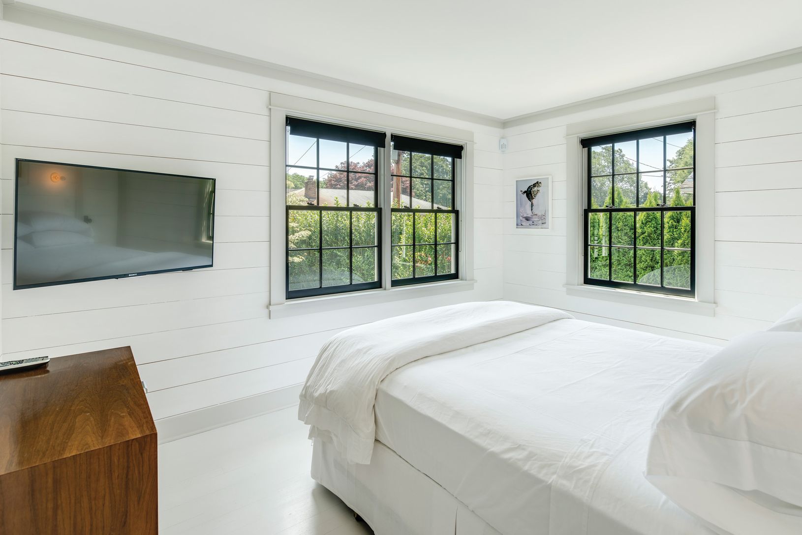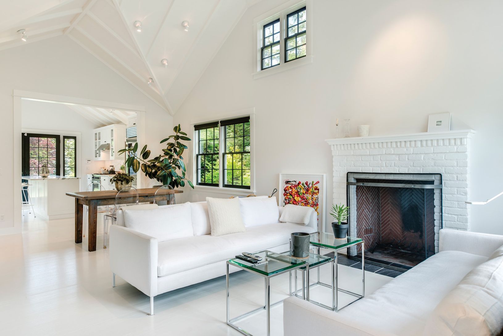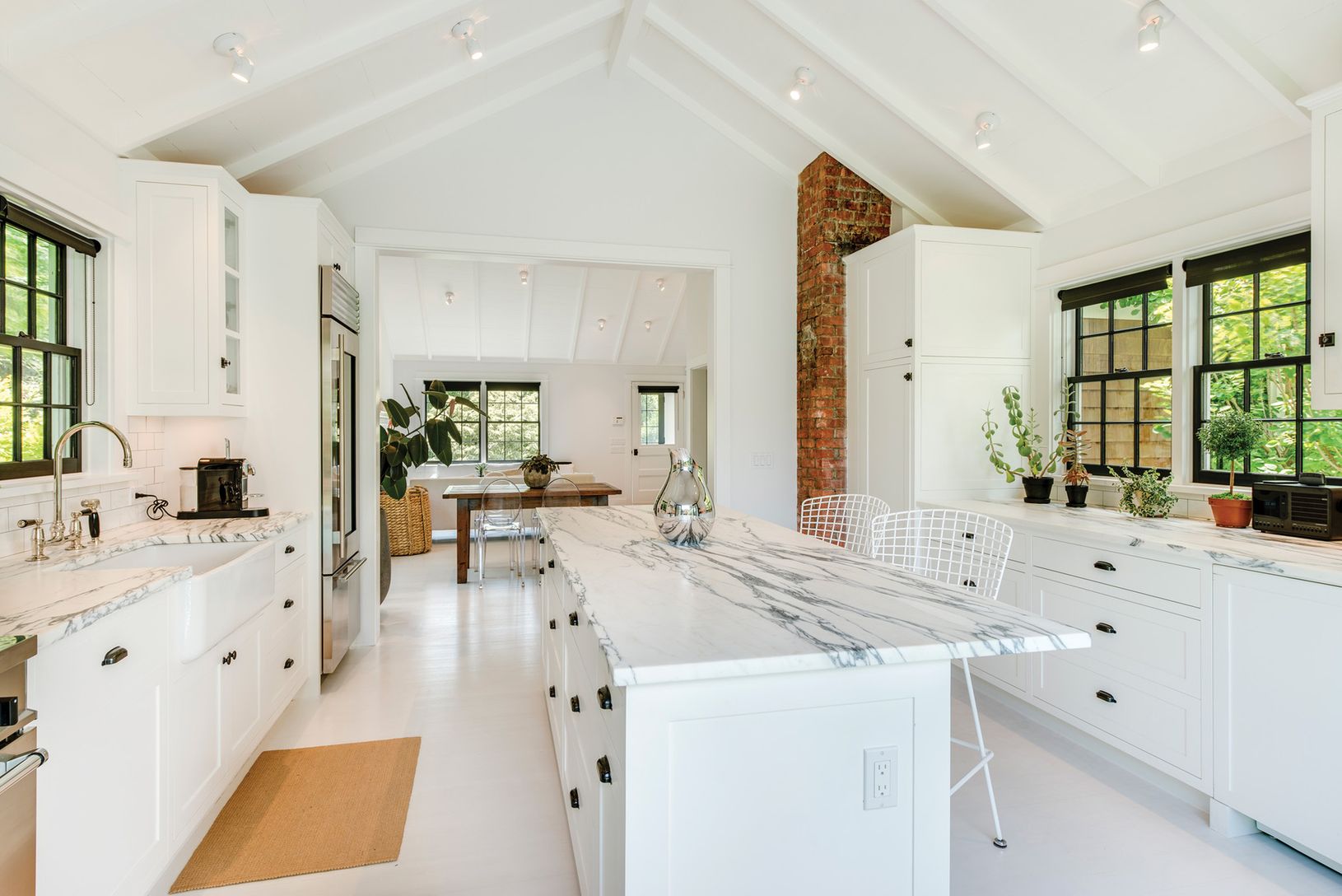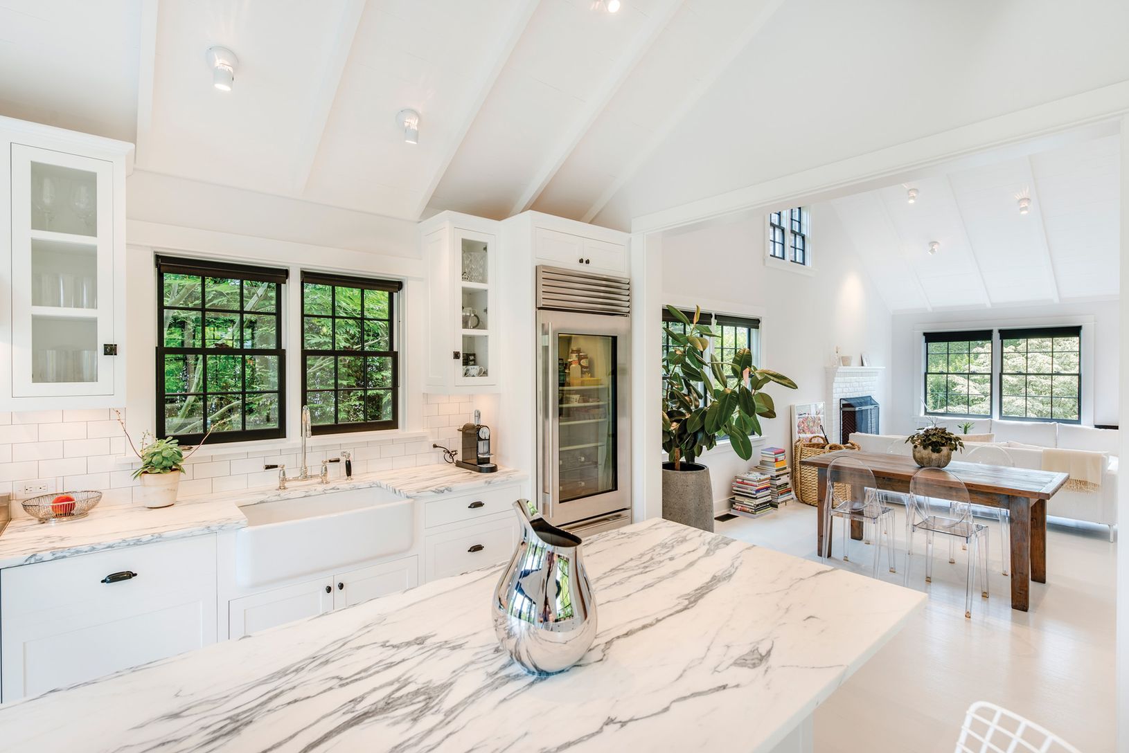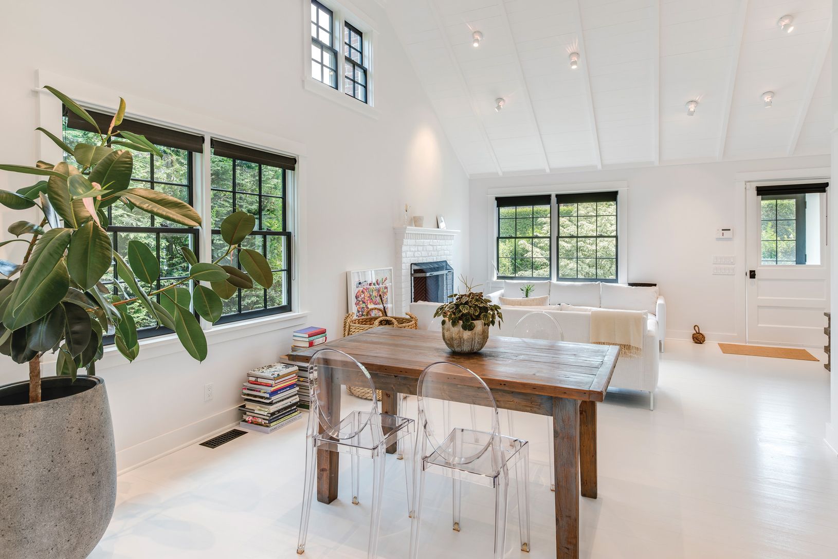 On a very special street in Southampton Village this completely renovated jewel box of a home is an inspired reimagining of a traditional village cottage. Fordham Road is a small, winding lane off of Hill Street, a quiet oasis secluded from the bustle of the village. Enter from the enclosed porch into open, flowing living areas where white floors, walls and ceilings are accented with crisp black trim. High vaulted wood ceilings impart a sense