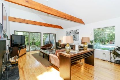 Rental Registration #: 19-55 Amazing value for pool and private tennis just minutes from East Hampton Village Fringe. On a secluded four acres, this four bedroom contemporary has abundant natural light from high ceilings and large windows. Sliding glass doors open directly to the outdoor dining and lounge areas. The large pool and deck provide a safe, enclosed space for children and pets. Easily entertain guests rain or shine with plenty of in