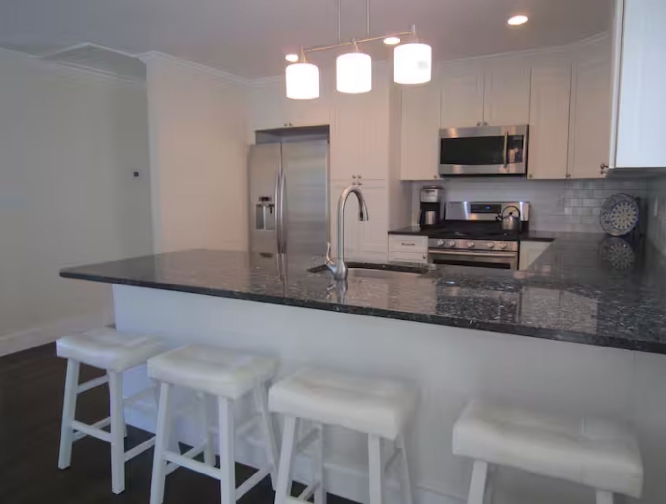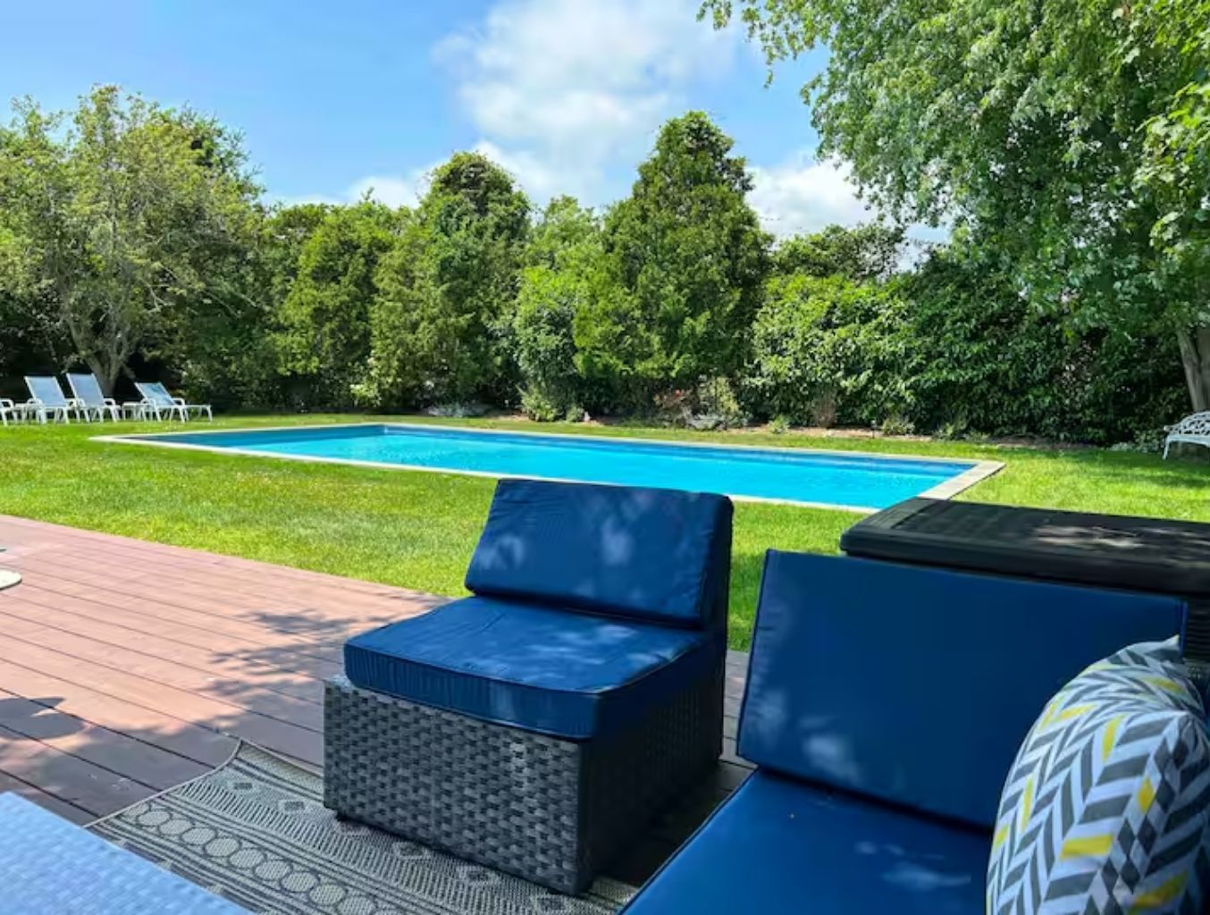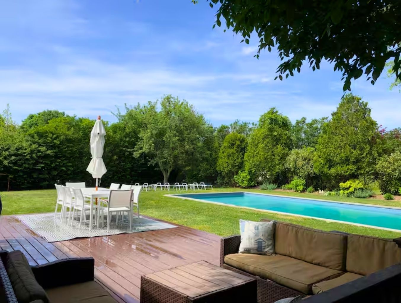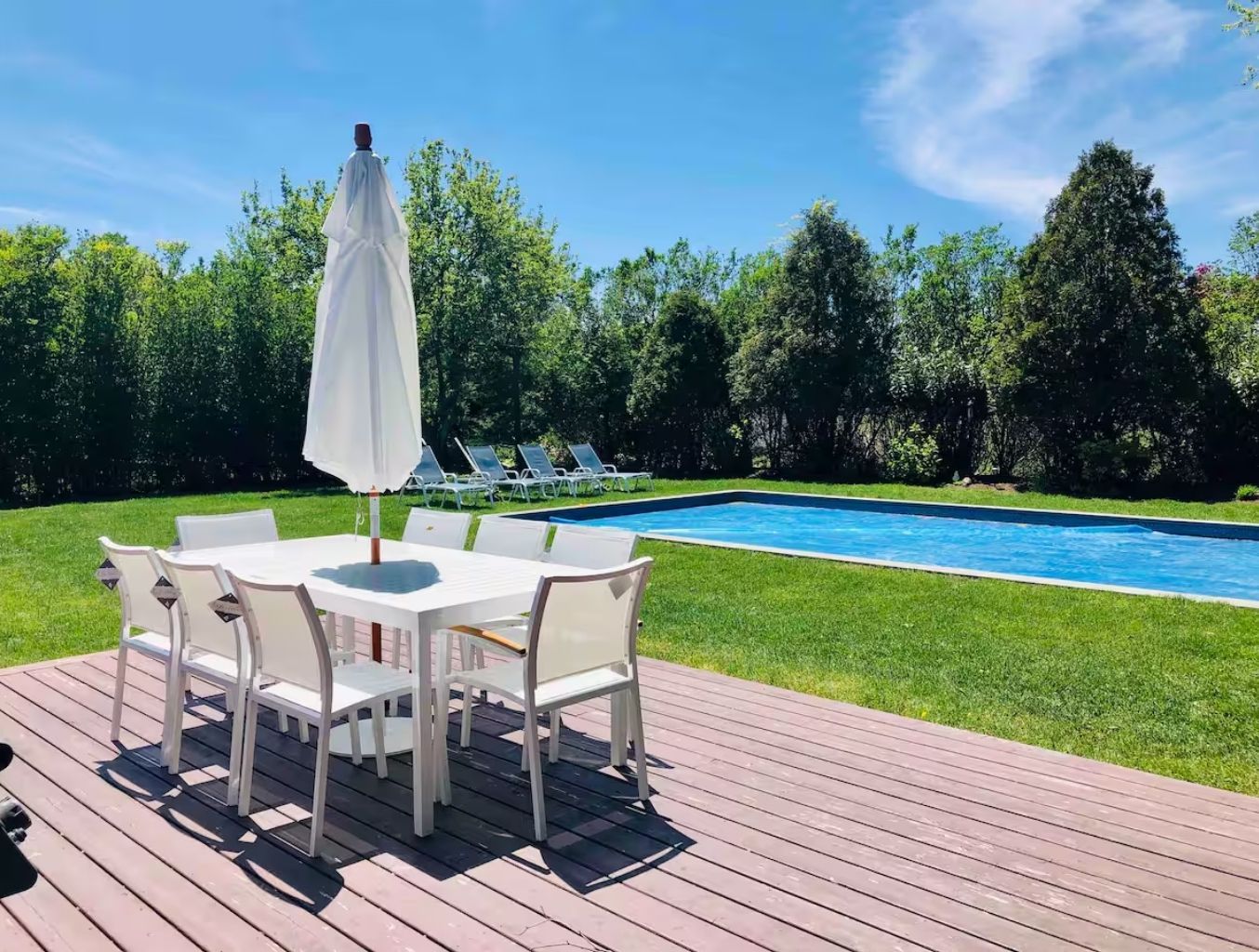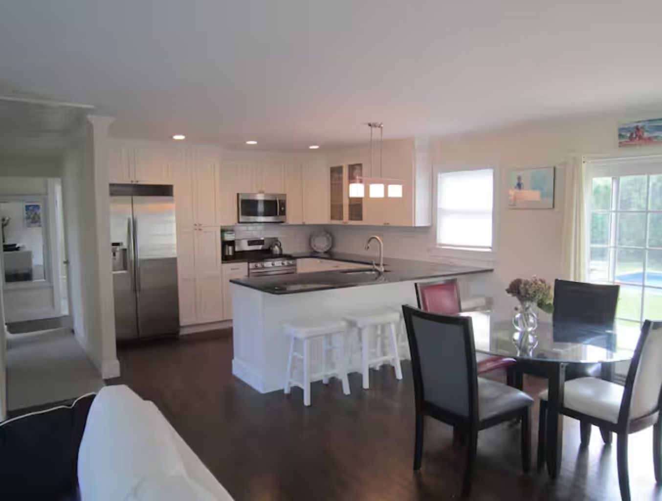 Newly renovated 3 bedroom, 3 bath central air conditioned home in Southampton Village, features an open-plan living room with a dining room, a gourmet chef's kitchen with granite countertops, high-end stainless steel appliances and a great room leading to an outdoor deck and new 20x40 heated pool with a cozy deck with seating and dining areas and new Weber grill! No parties!