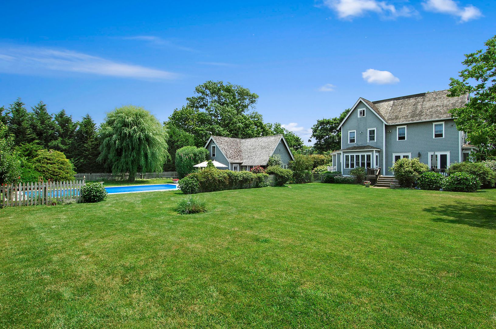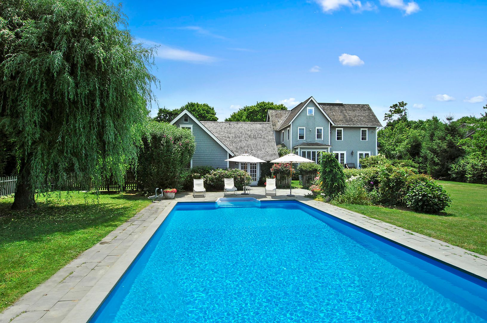 This charming farm house styled home has four bedrooms; three bathes and is situated on a shy acre. The property is only .7 of a mile from Flying Point Beach and just moments from both Southampton and Water Mill restaurants and shopping. The classically appointed rooms are spacious with high ceilings throughout. A Detached 1.5 car garage with fully plumbed pool house and pool on a beautifully landscaped property has ample space to entertai
