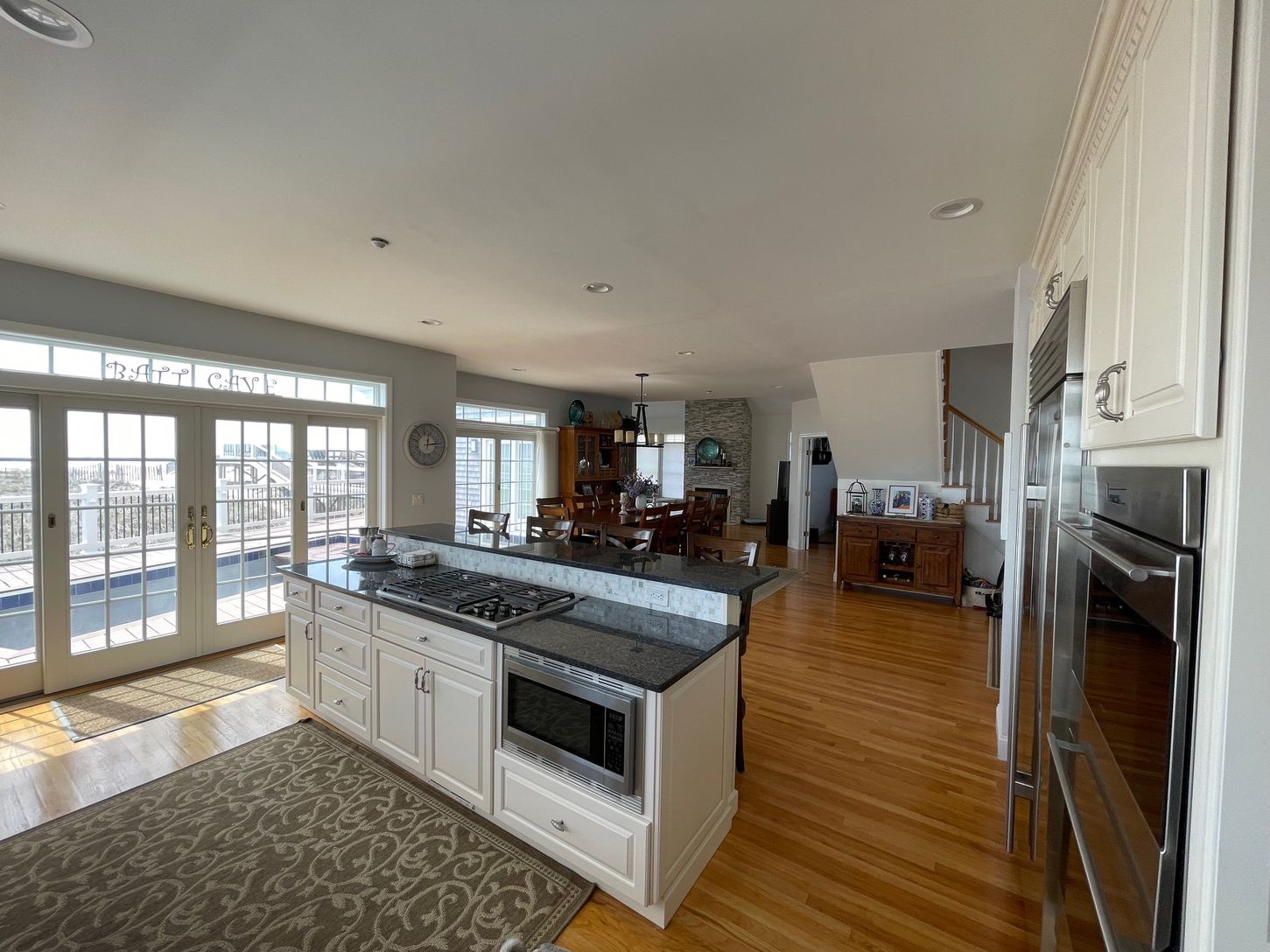 Three story, 4500+ sq. ft., ocean front home with private pier/access to beach, spectacular 360 degree views and sunsets of both the beach and bay, heated swimming pool, grill and patio furniture (seats more than 10 people).