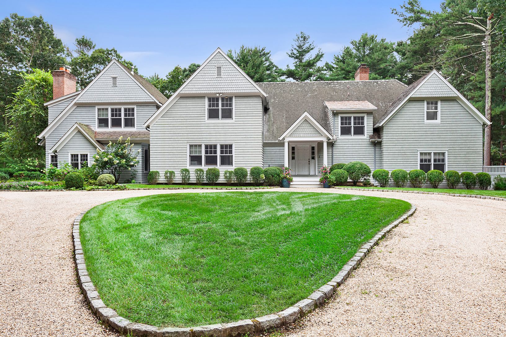Behind the gates of this approximately 2.6-acre estate located on desirable Bull Path is an approximately 6,200-square-foot, seven-bedroom, six-full-bathroom and two-half-bathroom home that is the essence of Hamptons style.