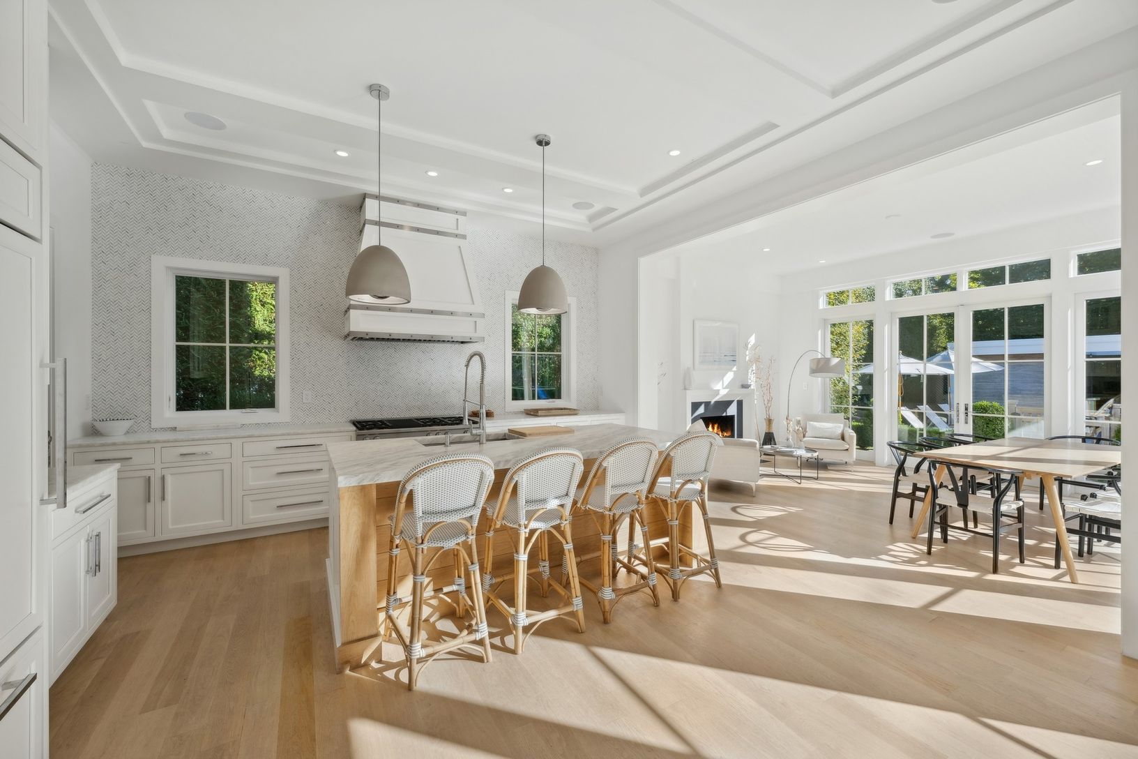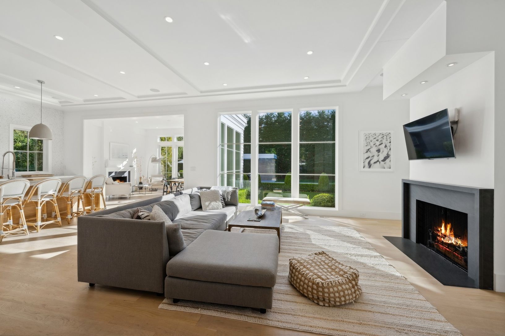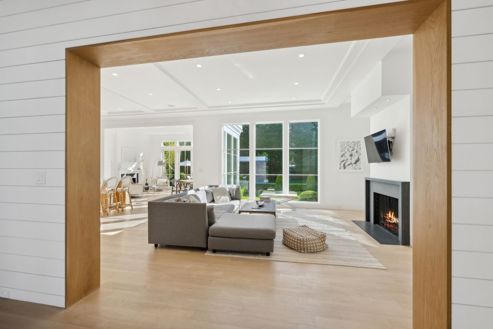 Nestled in the heart of East Hampton Village, this exquisite residence is a marriage of casual elegance and traditional design. Its clean, graceful lines and superb craftsmanship are immediately evident as you approach the home down a gently curving, crushed white marble drive. Enter into a sun drenched, open concept first floor living space with floor to ceiling, south facing windows that flood the home with glowing natural light. Flow effort