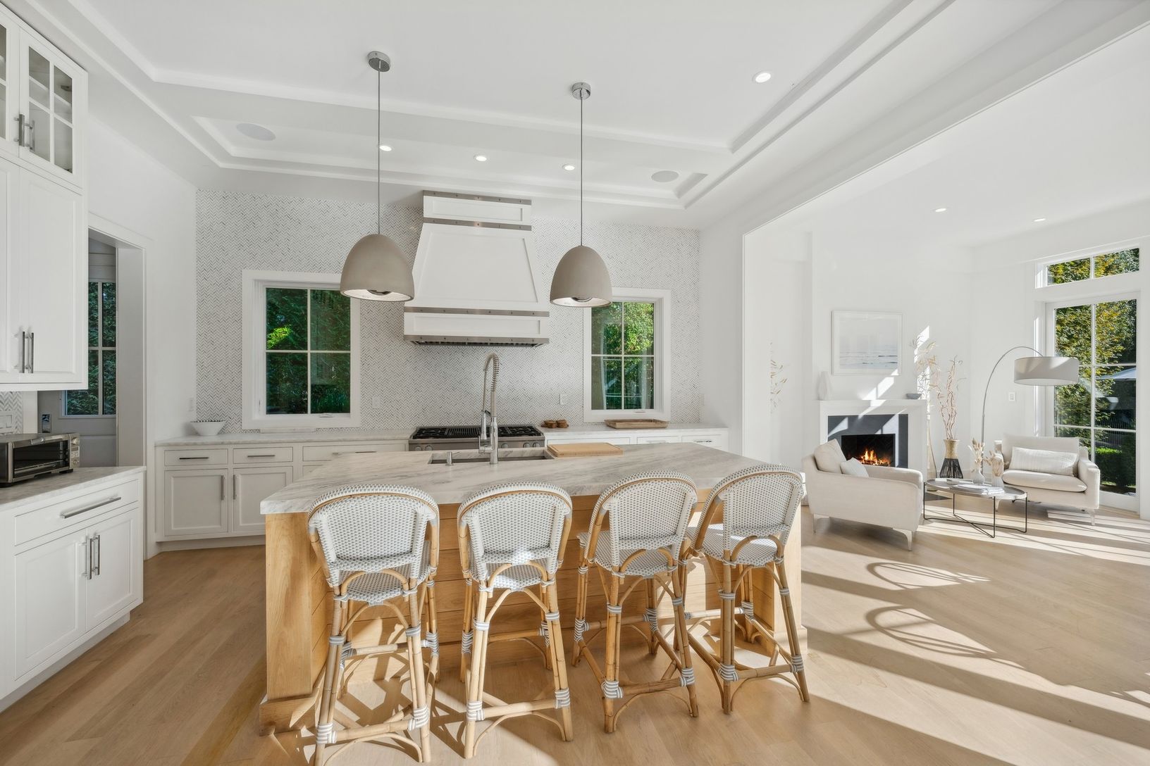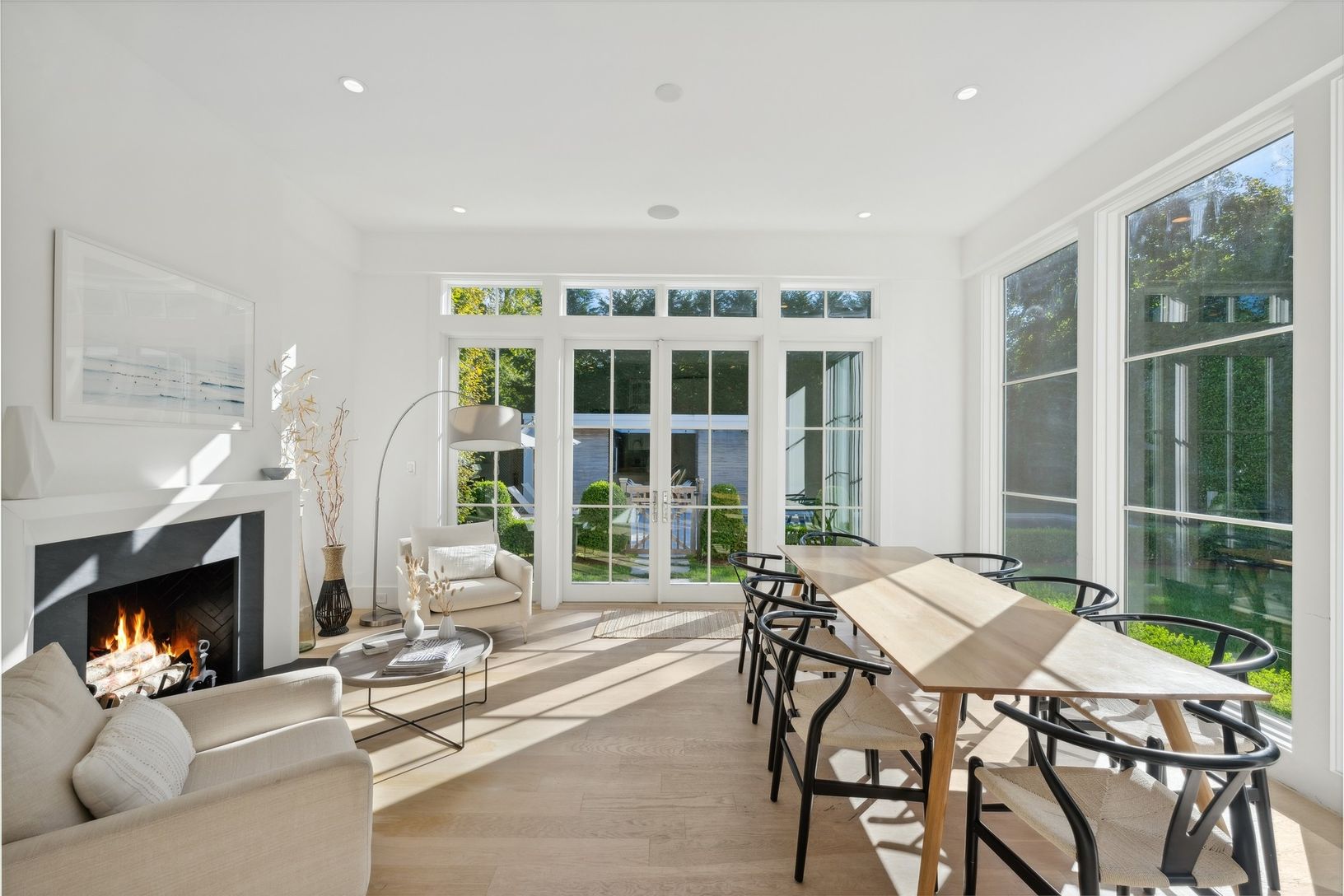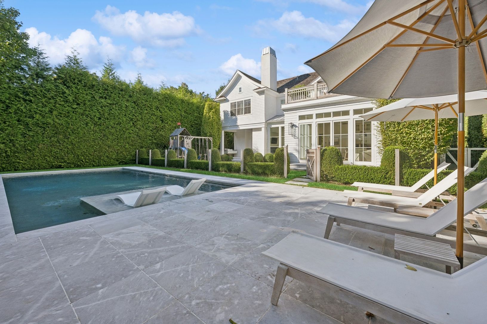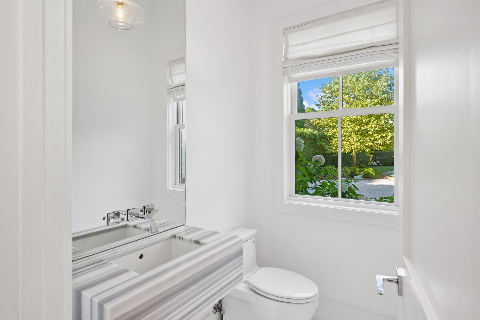 Nestled in the heart of East Hampton Village, this exquisite residence is a marriage of casual elegance and traditional design. Its clean, graceful lines and superb craftsmanship are immediately evident as you approach the home down a gently curving, crushed white marble drive. Enter into a sun drenched, open concept first floor living space with floor to ceiling, south facing windows that flood the home with glowing natural light. Flow effort