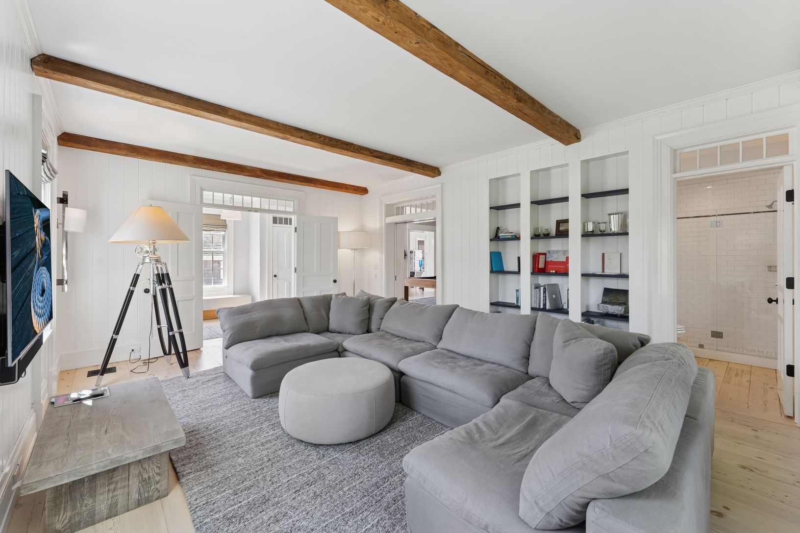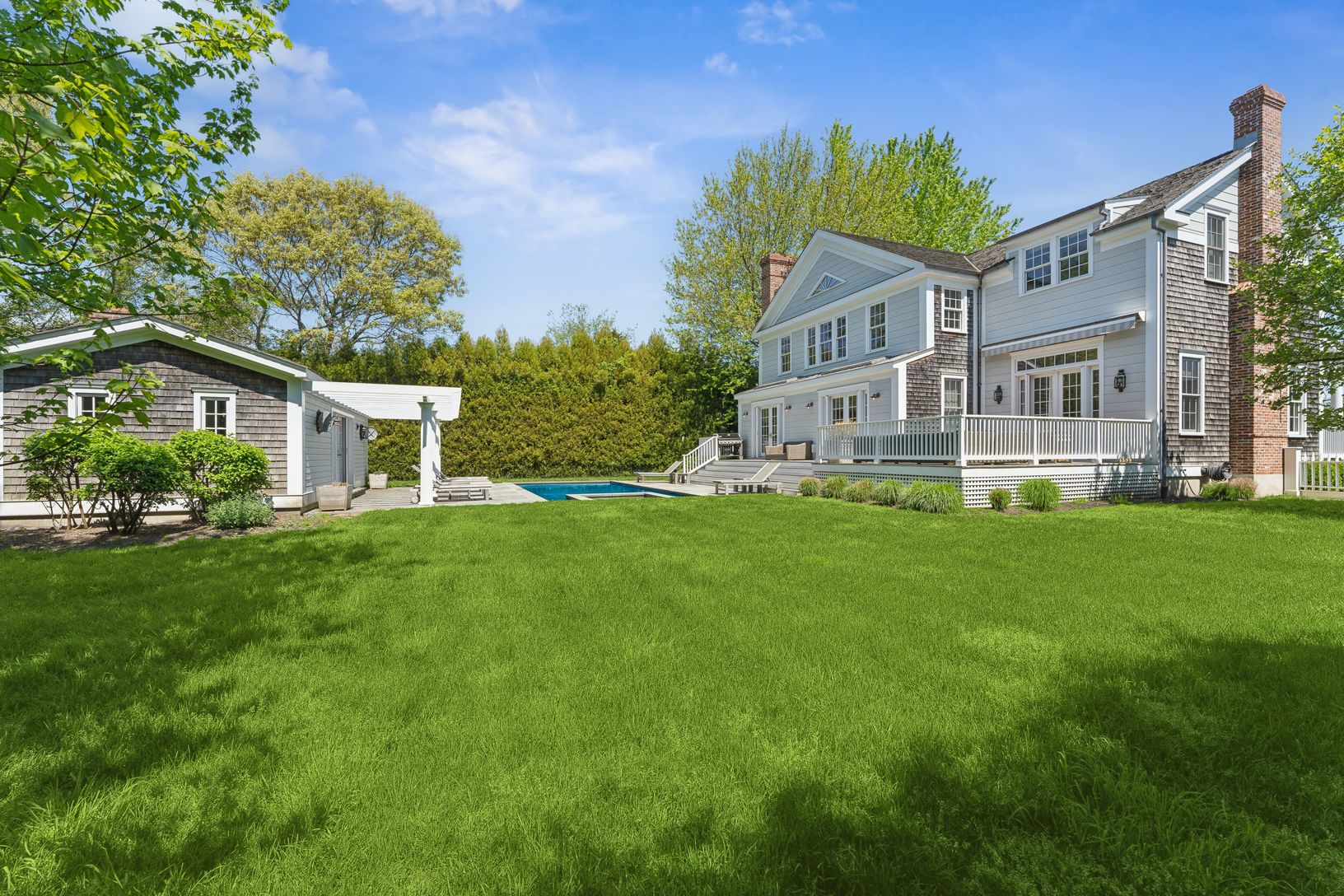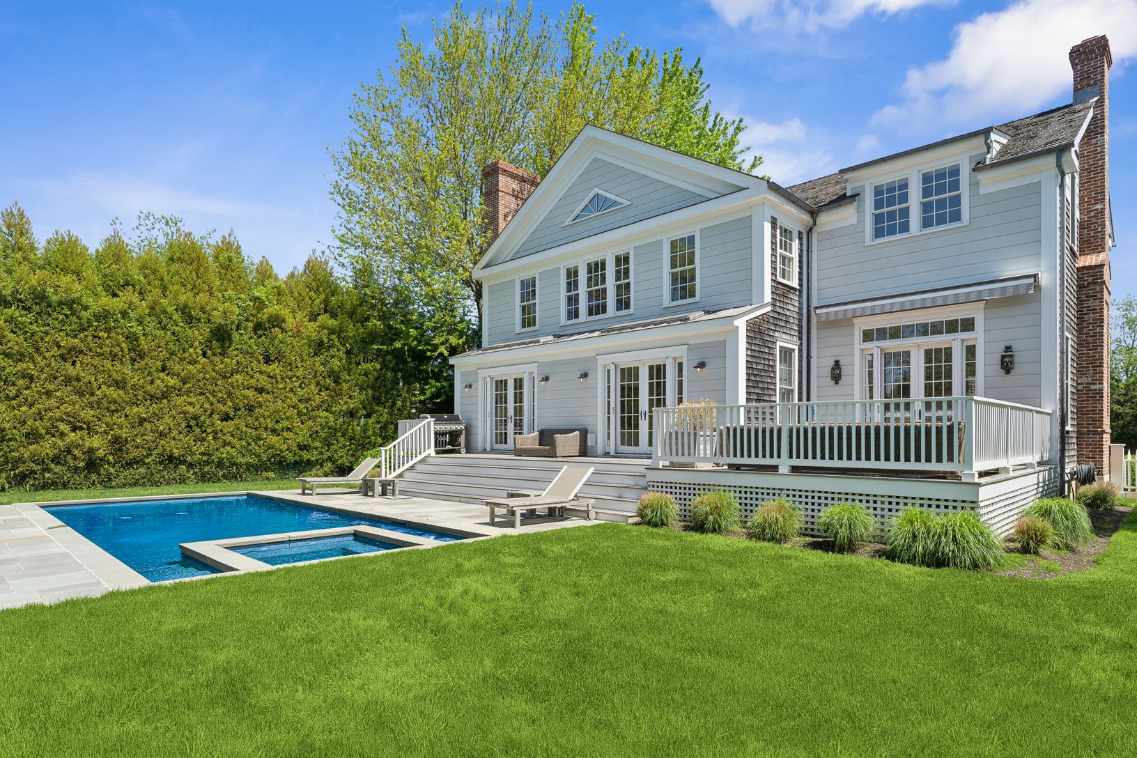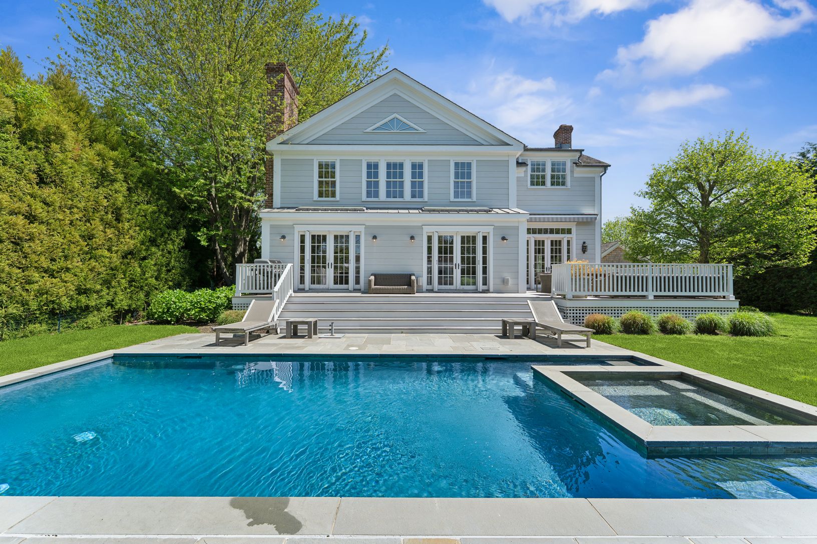 Available for July or August, this elegant village home offers the perfect Hamptons summer: spacious, stylish, and just moments from the heart of Sag Harbor. With over 5,000 square feet of beautifully designed interiors, the home features soaring ceilings, oversized rooms, and effortless flow between indoor and outdoor spaces. French doors open from the living, dining, and kitchen areas to a generous bluestone terrace, heated Gunite pool, and