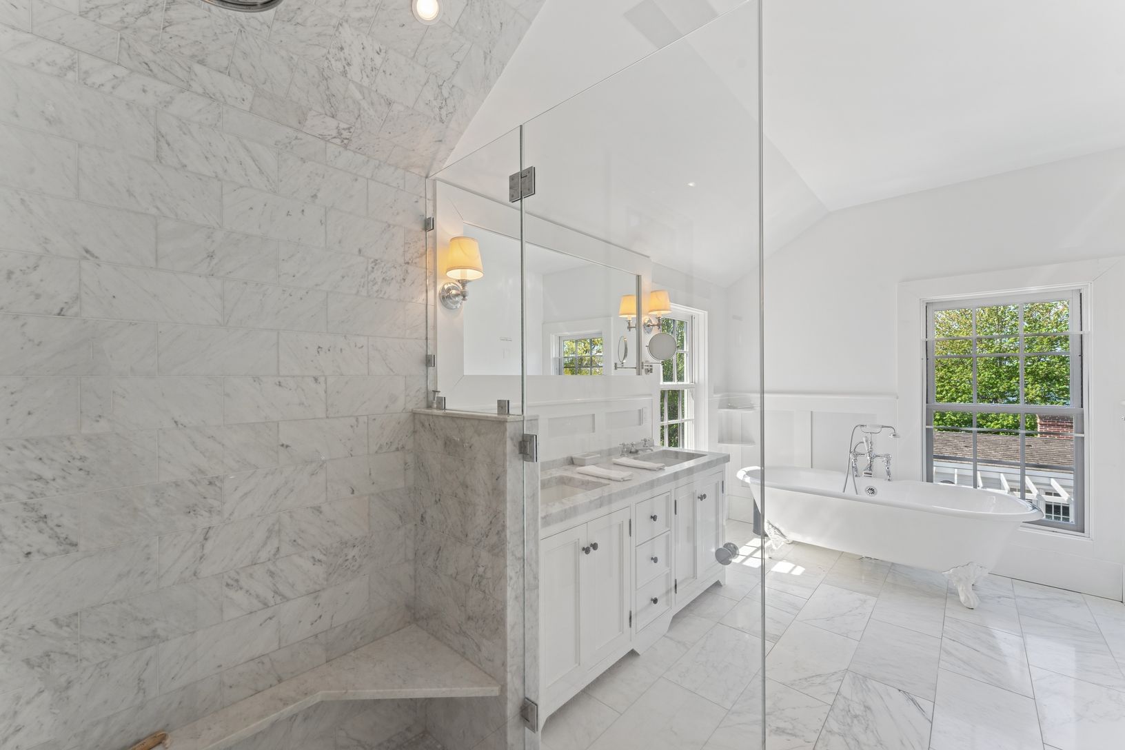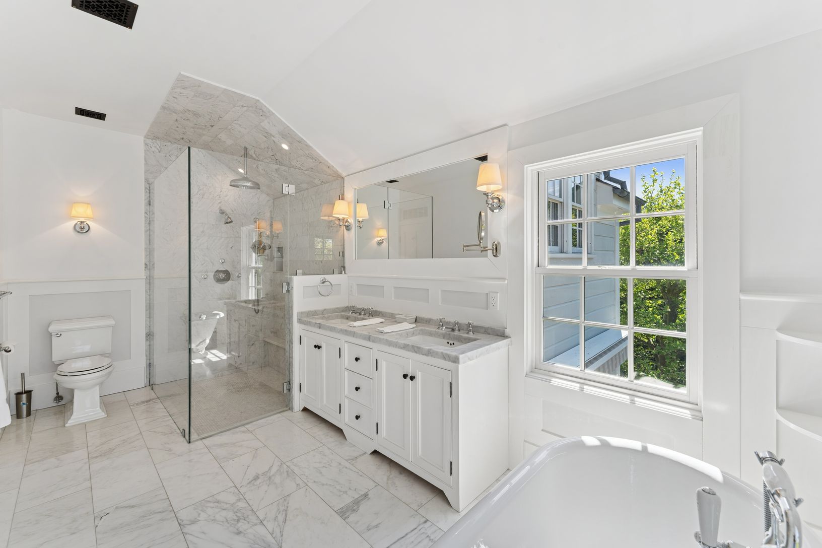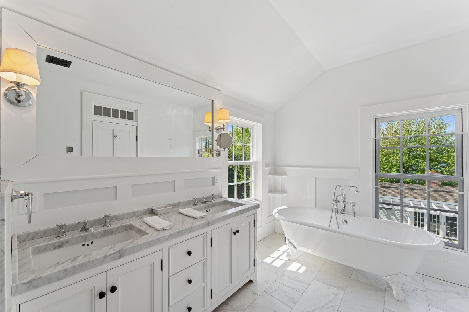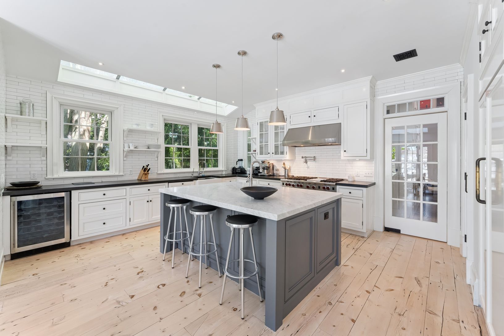 Available for July or August, this elegant village home offers the perfect Hamptons summer: spacious, stylish, and just moments from the heart of Sag Harbor. With over 5,000 square feet of beautifully designed interiors, the home features soaring ceilings, oversized rooms, and effortless flow between indoor and outdoor spaces. French doors open from the living, dining, and kitchen areas to a generous bluestone terrace, heated Gunite pool, and
