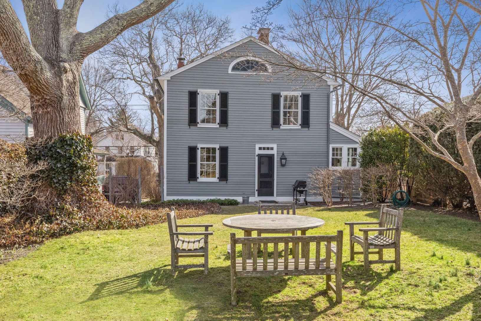 Lovely three bedroom historic house circa the 1840s in the heart of the Village of Sag Harbor. Wide plank floors, central air, modern kitchen, off street parking. Lovely and private backyard with a beautifully converted garage building that is an entertaining space with a second full bathroom. Immaculate condition and pristine landscaping.