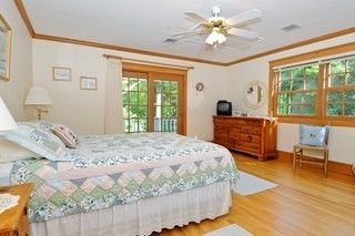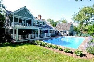 Just steps to the beach and community tennis courts in North Haven Point, this 4000 square foot traditional offers 5 bedrooms and 4.5 baths. In addition to a den, the living room with cathedral ceiling has a wood burning fireplace. The eat in kitchen leads to a formal dining room. A master suite is located on the first floor and opens out to the heated pool and outdoor shower. There are two additional en-suite bedrooms on the second floor.