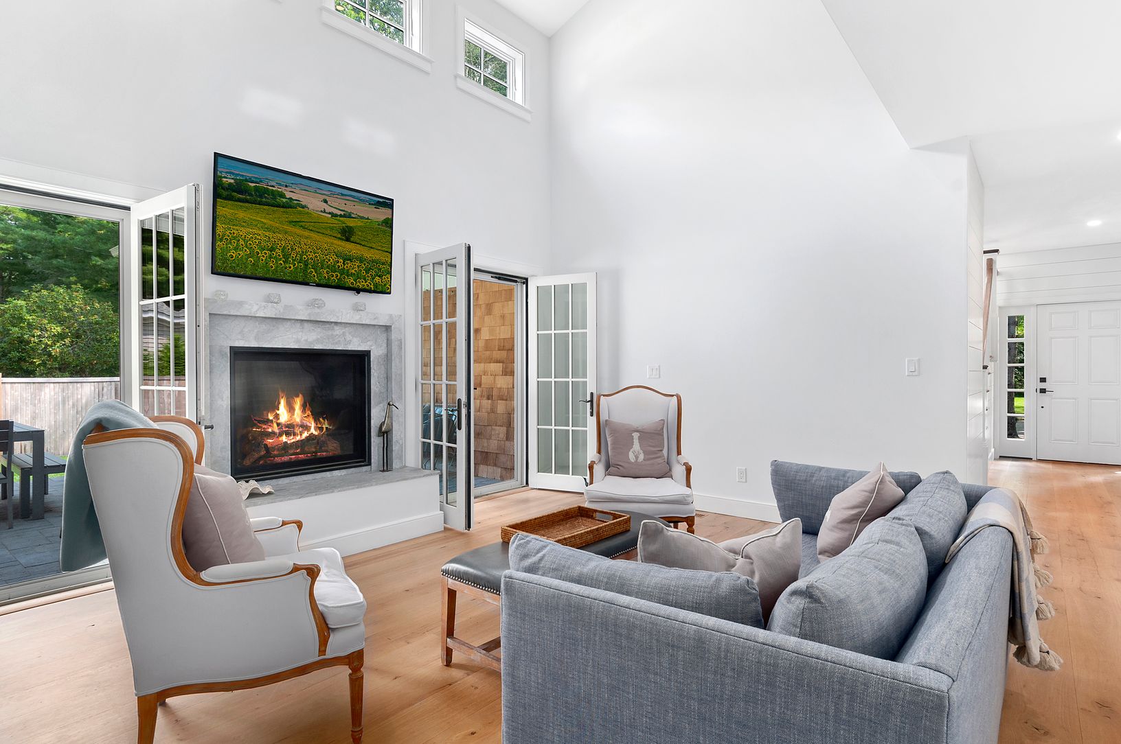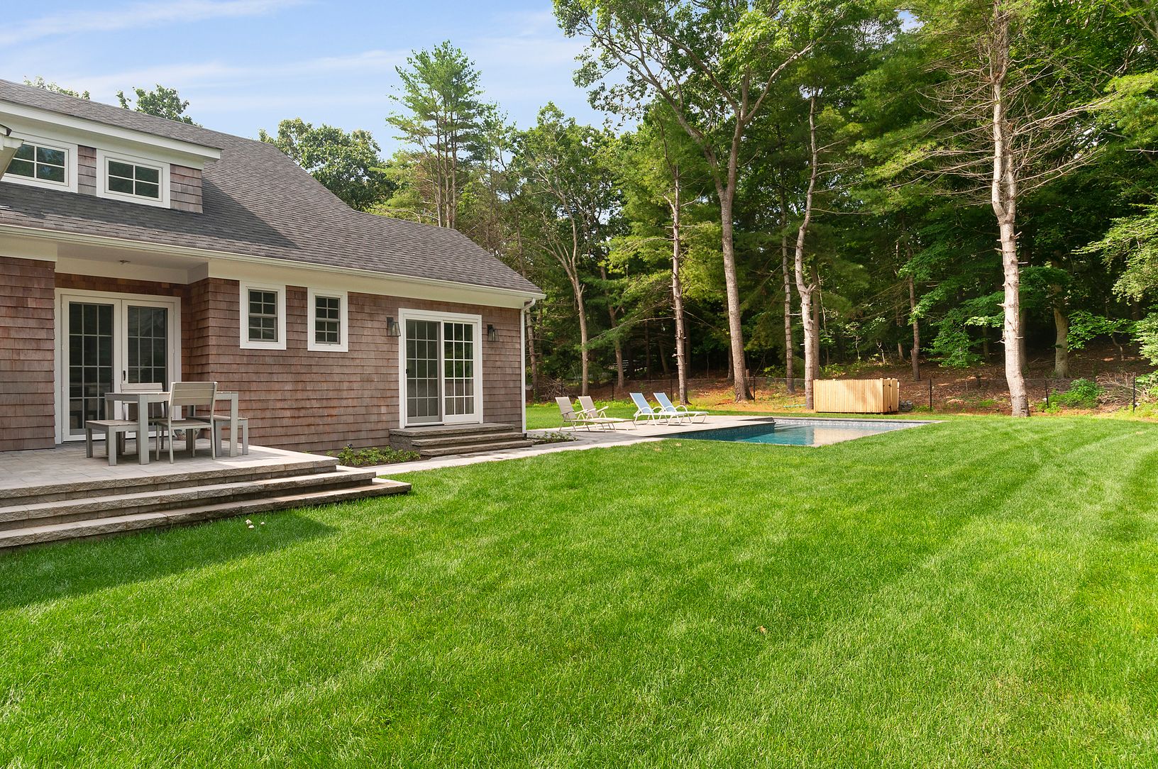This beautifully designed new construction is just a short distance to the heart of Amagansett. Sitting on a +/-.55 acre lot this two story home has 4 bedrooms and 3.5 bathrooms, full basement, pool, first floor master bedroom, den, mud room and attached one car garage. In the entry and throughout the home are wide-plank hard wood floors. After passing through the front hall there’s a den with fireplace on your left, followed by open kitchen a