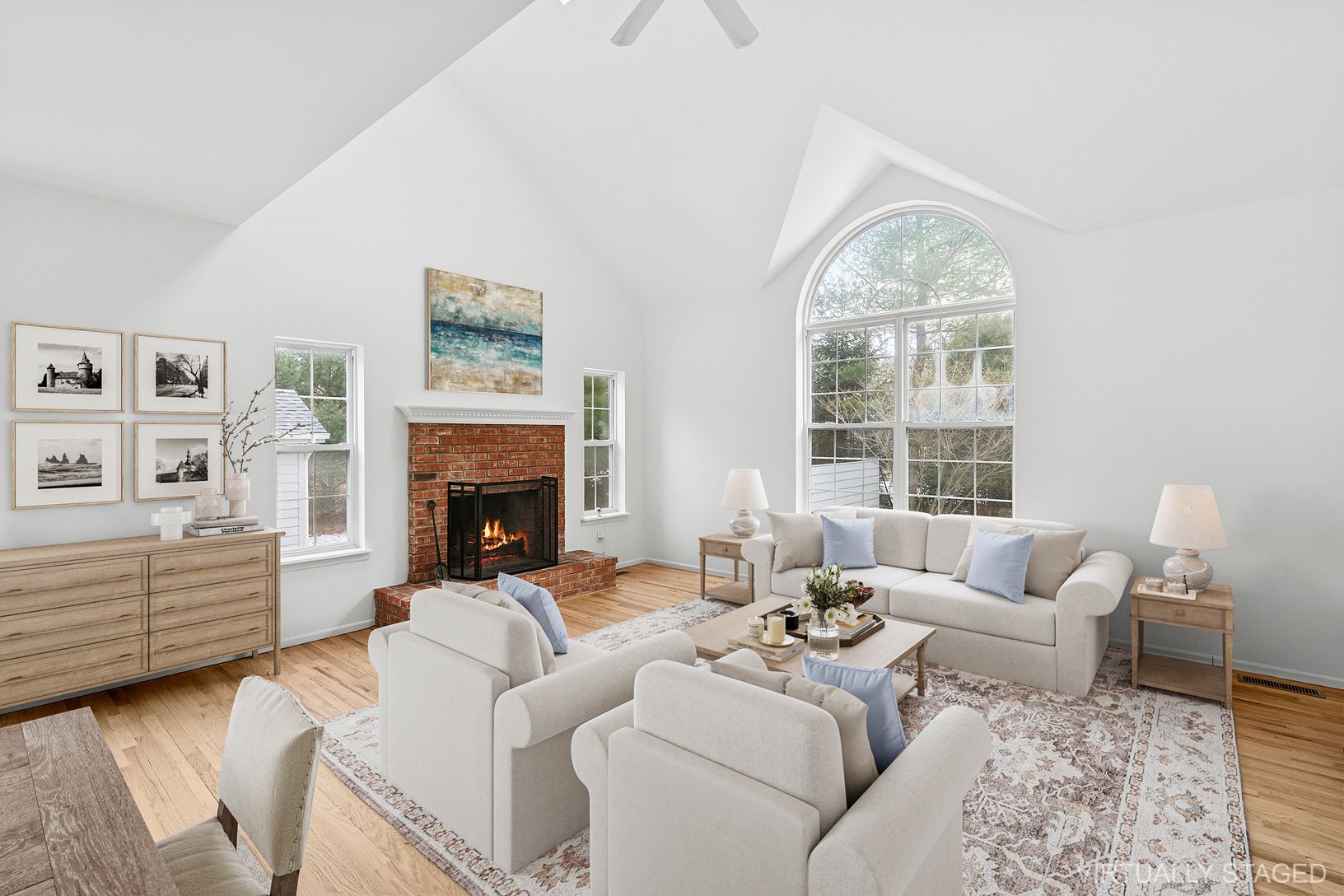 This cheerful home has just been refreshed for an easy turn-key transition. A delightful home for all seasons offering 4 bedrooms, 4 bathrooms, a large family room with a covered porch, and a dedicated office space. The open-plan double-height living room, dining, and kitchen are filled with lots of natural light. The overall floor plan is adaptable to evolving modern living arrangements. Relax and enjoy the ambiance of two fireplaces, one ind