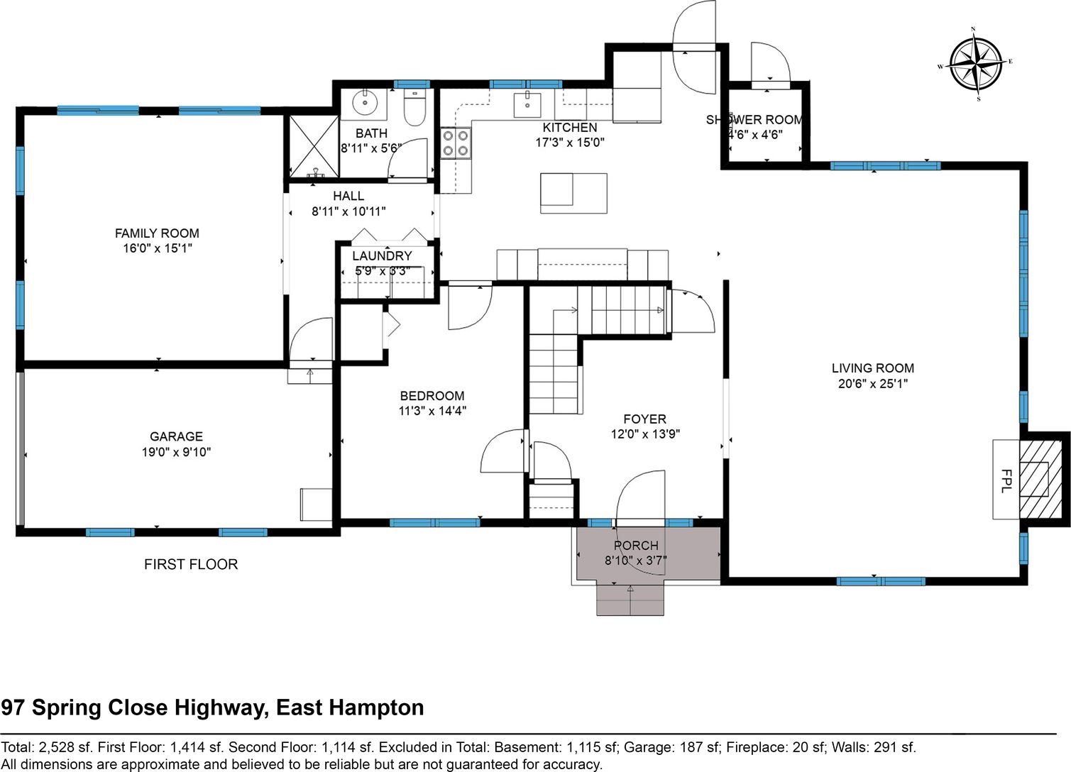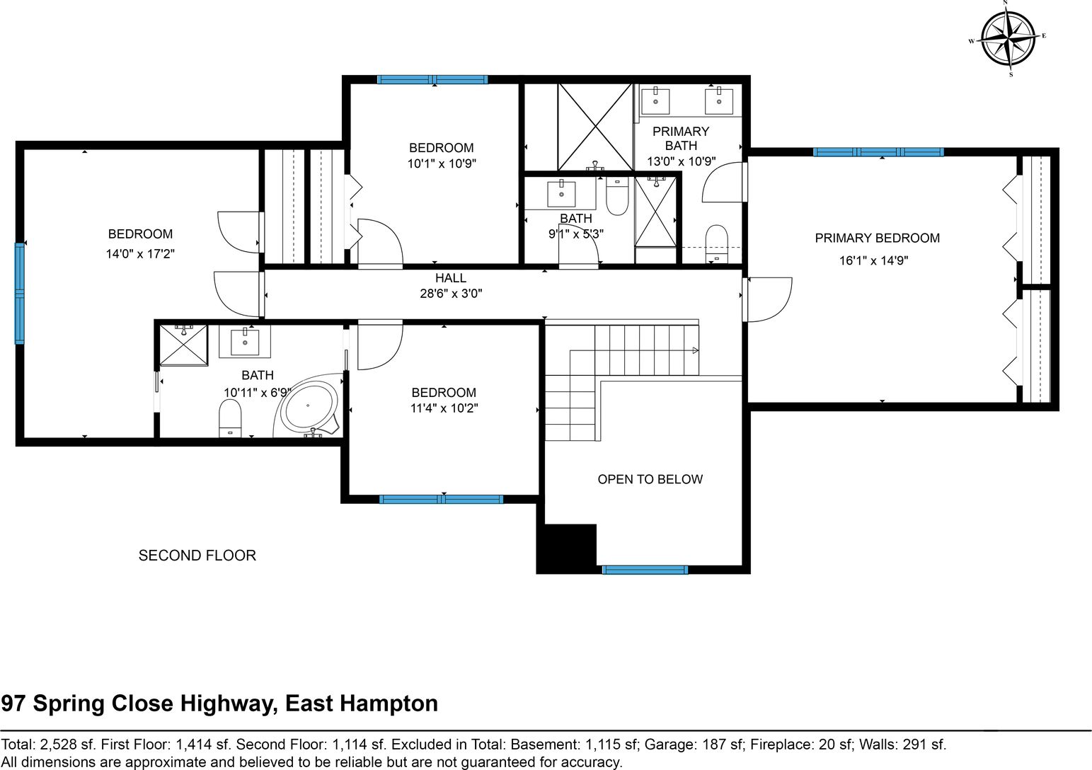 Tucked just off the main corridor in East Hampton, this private retreat at 97 Spring Close Highway offers 4 bedrooms, 4 bathrooms, a dedicated home office, and a light-filled double-height living space with open chef's kitchen and dining. Two fireplaces—indoors and out—set the tone for year-round comfort.