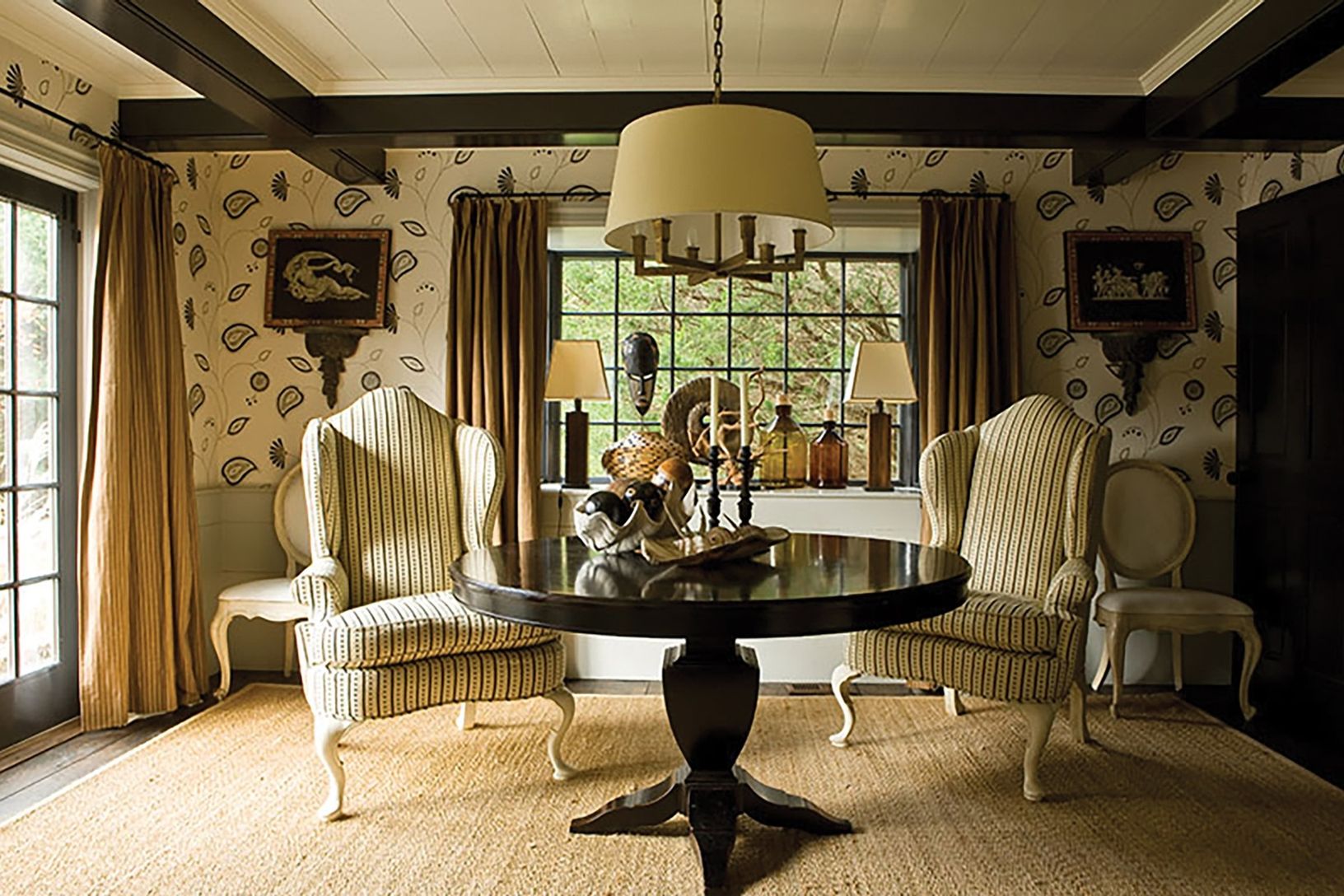 This stunning home was designed , renovated and decorated by the prestigious architect Jean Louis Denoit. Exuding impressive charm, it features five bedrooms, five baths, a full chef's kitchen, dining room, living room and library with a two-sided fireplace. The second floor offers a generous master bedroom with vaulted ceilings and 3 additional bedrooms all en-suite. All living area on first floor opens to a private spacious mature landsca