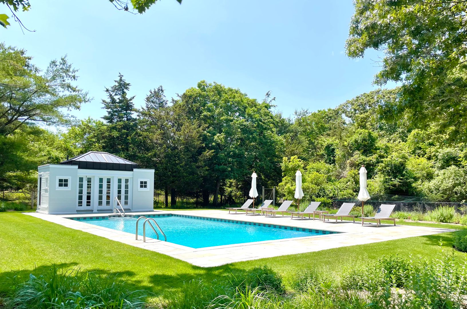 Just completed and never rented, spectacular 5+ bedroom 4.5 bathroom home. 9.2 acres of privacy located a short distance to all Easthampton has to offer, beaches, shopping and world class dining. This newly reimagined bright 5000+/- sq.ft. home has all you could ever want to enjoy a wonderful summer in The Hamptons. The main level offers a spacious open floor-plan with a brand new state of the art kitchen with counter seating a double facing f