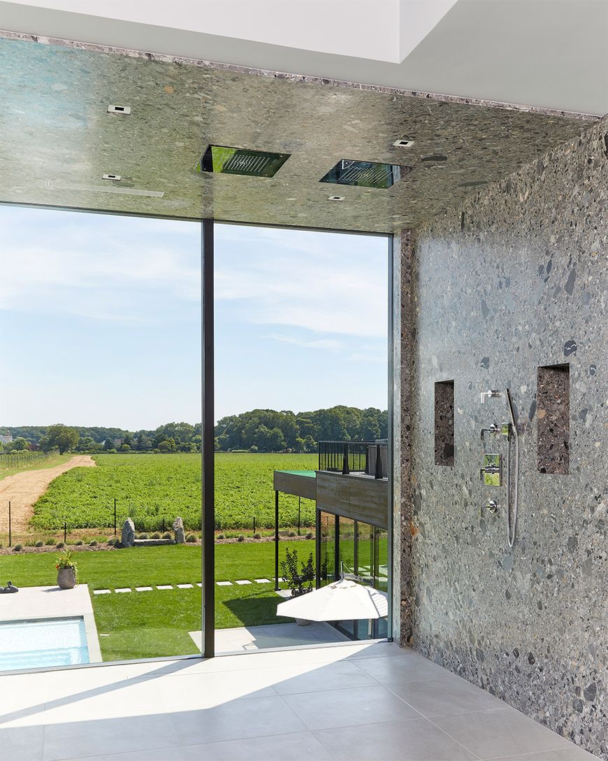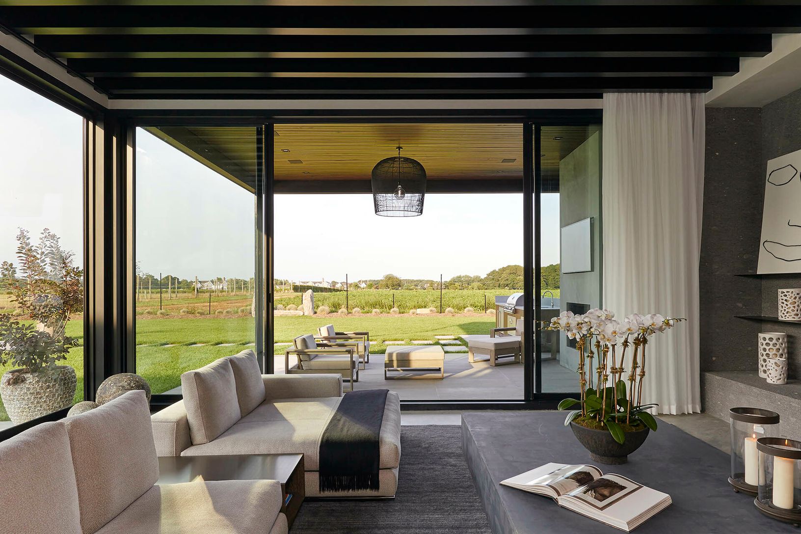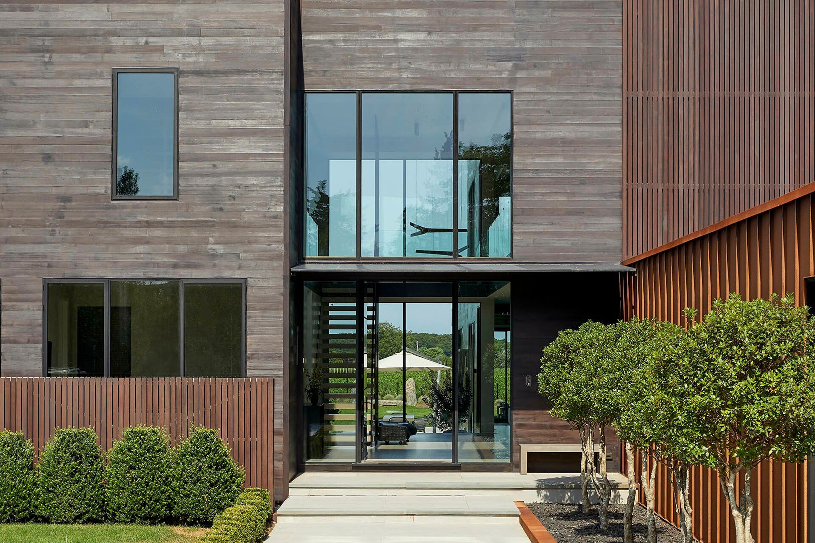 This modern new construction home brings an alluring architectural aesthetic to the Hamptons - complete with glass walls that bring the outdoors in, rustic exterior tones, and the finest selection of materials and finishes. The exteri